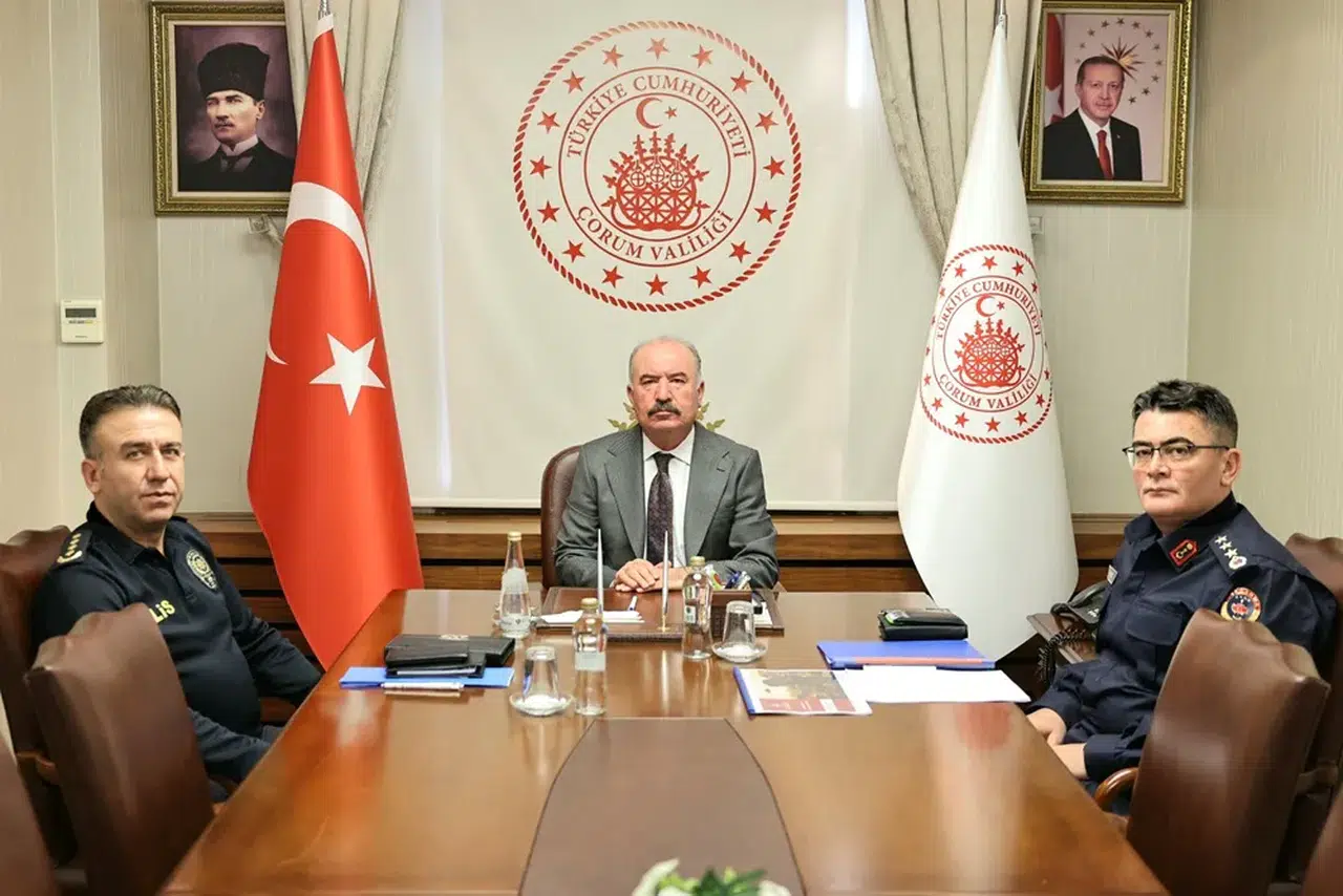 Çorum Valiliği'nden yapılan açıklamaya göre, Valilik Toplantı Salonu'nda düzenlenen video konferans toplantısında Vali Çalgan'a, İl Emniyet Müdürü Arif Pehlivan ve İl Jandarma Komutanı J. Kd. Alb. Kubilay Ayvaz eşlik etti.