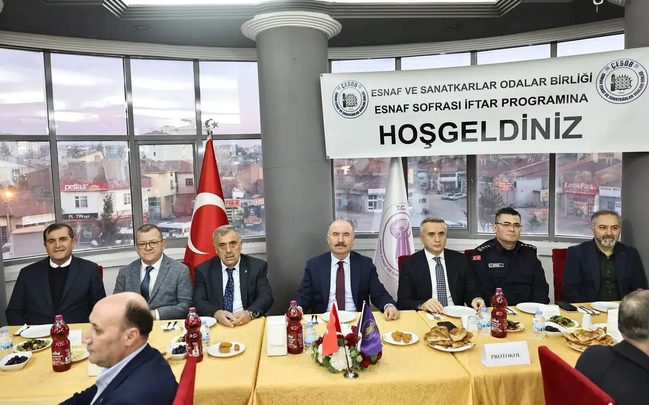 Çorum Esnaf ve Sanatkarlar Odaları Birliği Başkanı Recep Gür tarafından düzenlenen iftar programı, kent protokolü ile esnaf odaları yöneticilerini ve çok sayıda esnafı aynı sofrada bir araya getirdi.