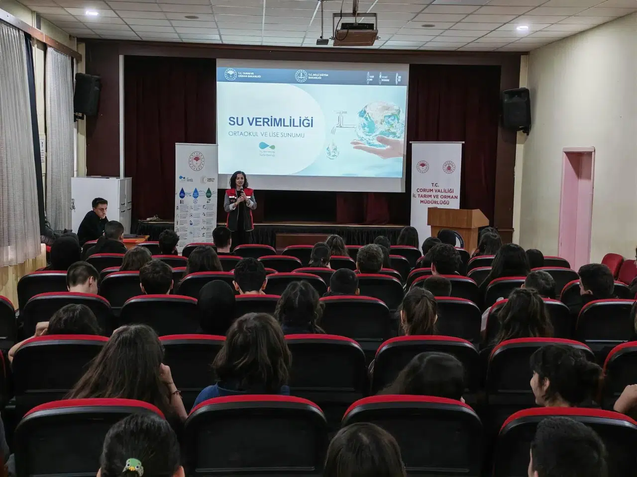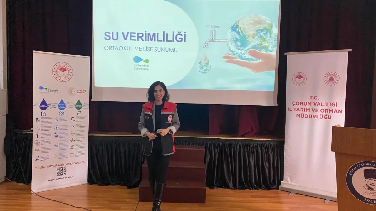 Çorum Tarım ve Orman İl Müdürlüğü tarafından yürütülen Su Verimliliği Seferberliği çalışmaları kapsamında Atatürk Anadolu Lisesi öğrencilerine su kaynaklarının korunması ve sürdürülebilir kullanımı amacıyla kapsamlı bir eğitim verildi.