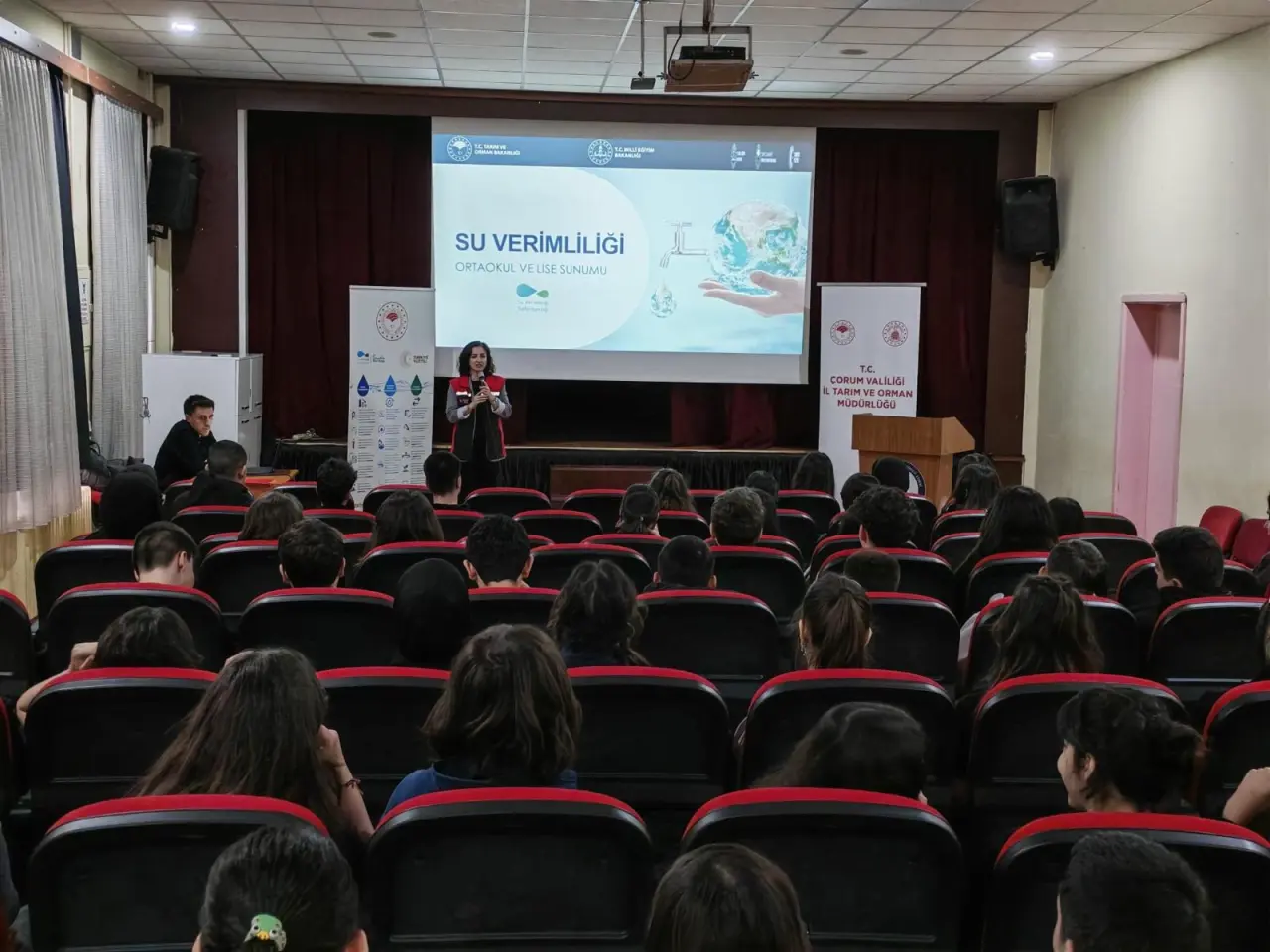 Çorum Tarım ve Orman İl Müdürlüğü tarafından yürütülen Su Verimliliği Seferberliği çalışmaları kapsamında Atatürk Anadolu Lisesi öğrencilerine su kaynaklarının korunması ve sürdürülebilir kullanımı amacıyla kapsamlı bir eğitim verildi. Tarım ve Orman Bakanlığı öncülüğünde başlatılan seferberlik doğrultusunda kentteki farkındalık faaliyetleri hız kesmeden devam ediyor.