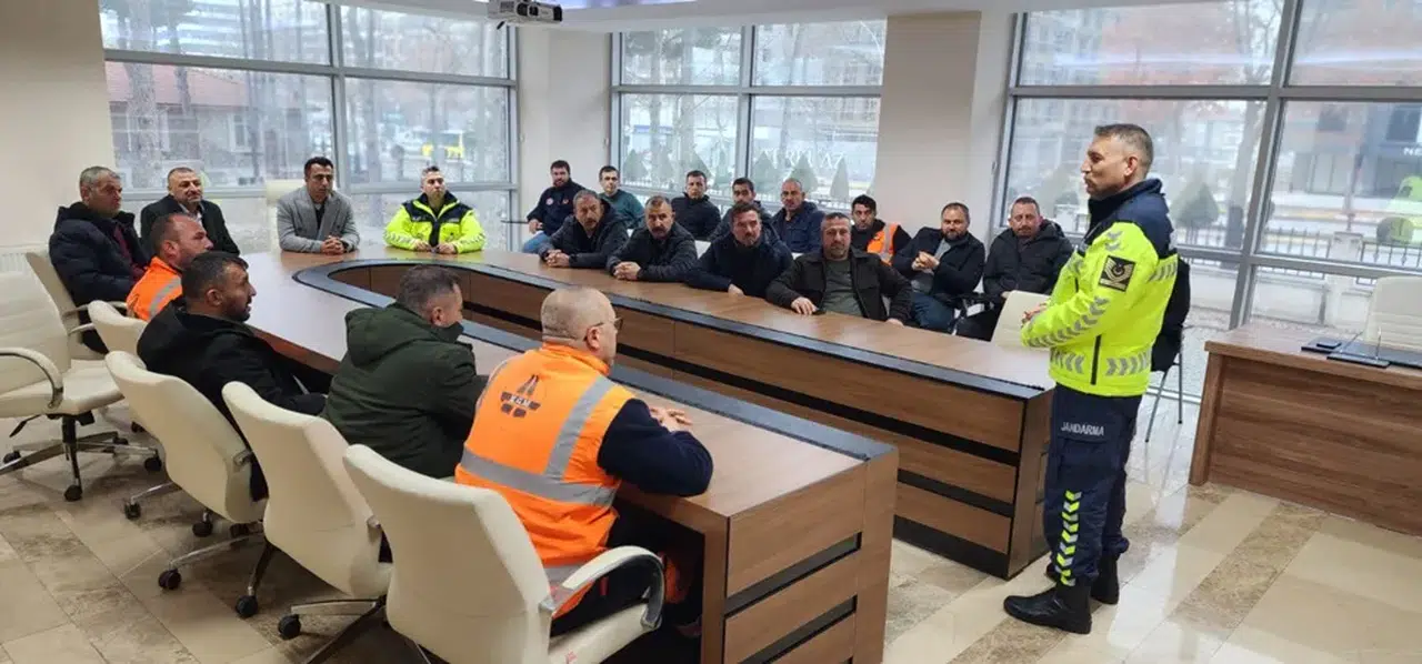 Karayolları 73. Şube Şefliğinde düzenlenen eğitimde, İl Jandarma Komutanlığı Trafik Şube Müdürlüğü ekipleri, personele kış aylarında güvenli sürüş teknikleri, alınması gereken tedbirler, kırmızı ışık, kavşaklarda geçiş önceliği gibi konularda bilgi verildi.