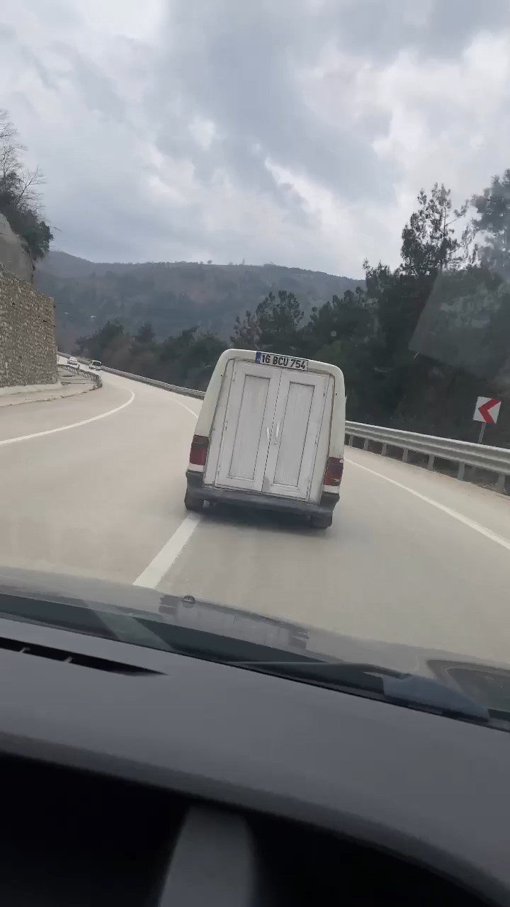 Bagaj kapağını plastik kapı ile kapatan şoför, görenleri hayrete düşürdü. 16 BCU 754 plakalı hafif ticari otomobilinin bagaj kapağı kırılınca, şoför de çareyi plastik kapı takarak buldu. Kendine özgü yaptığı stil ile Bursa caddelerinde gezen şoför, görenleri şaşırttı. O anlar vatandaş kamerasına yansıdı.