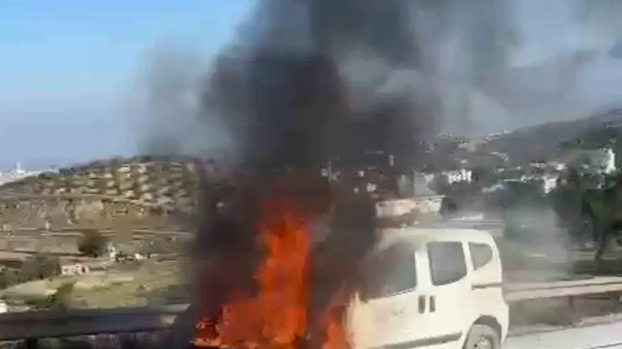 Hafif Ticari Araç Alev Alev Yandı: O Anlar Kamerada