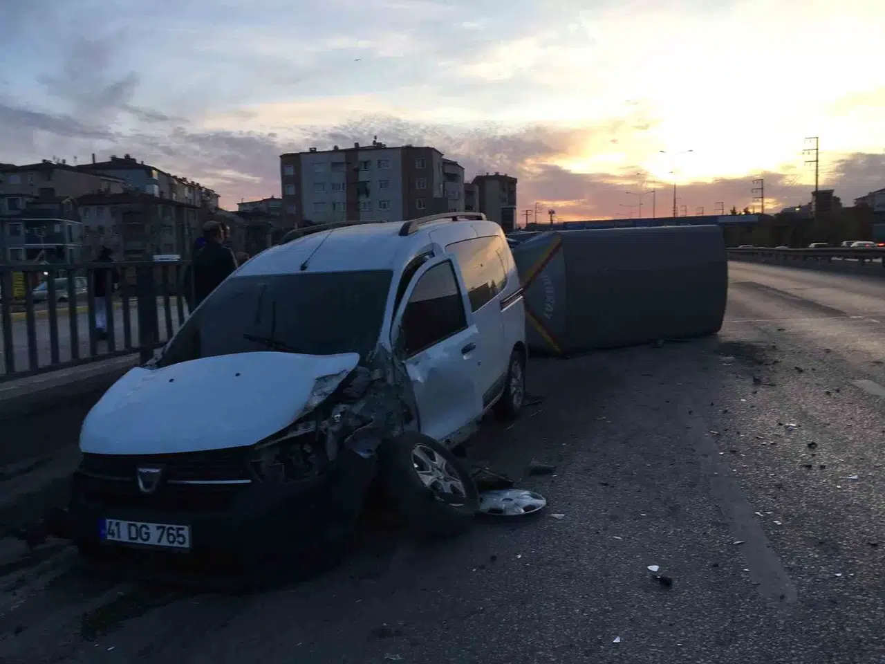 Kaza, saat 19.00 sıralarında Sırrıpaşa Mahallesi D-100 kara yolu Ankara istikametinde meydana geldi. Edinilen bilgiye göre, aynı istikamette seyir halinde olan M.S. idaresindeki 41 ANG 530 plakalı Kia marka patates yüklü kamyonet ile A.G. hakimiyetindeki 41 DG 765 plakalı Dacia marka hafif ticari araç çarpıştı. Çarpışmanın şiddetiyle hafif ticari araç yol kenarındaki bariyere savrulurken, kamyonet devrildi. Kazada sürücüler M.S. ve A.G. yaralandı. 112 Acil Çağrı Merkezine ihbarda bulunulmasıyla adrese sağlık ve polis ekipleri sevk edildi. Sağlık ekiplerince ilk müdahaleleri yapılan 2 yaralı, İzmit Seka Devlet Hastanesi ile Derince Eğitim ve Araştırma Hastanesine sevk edildi.