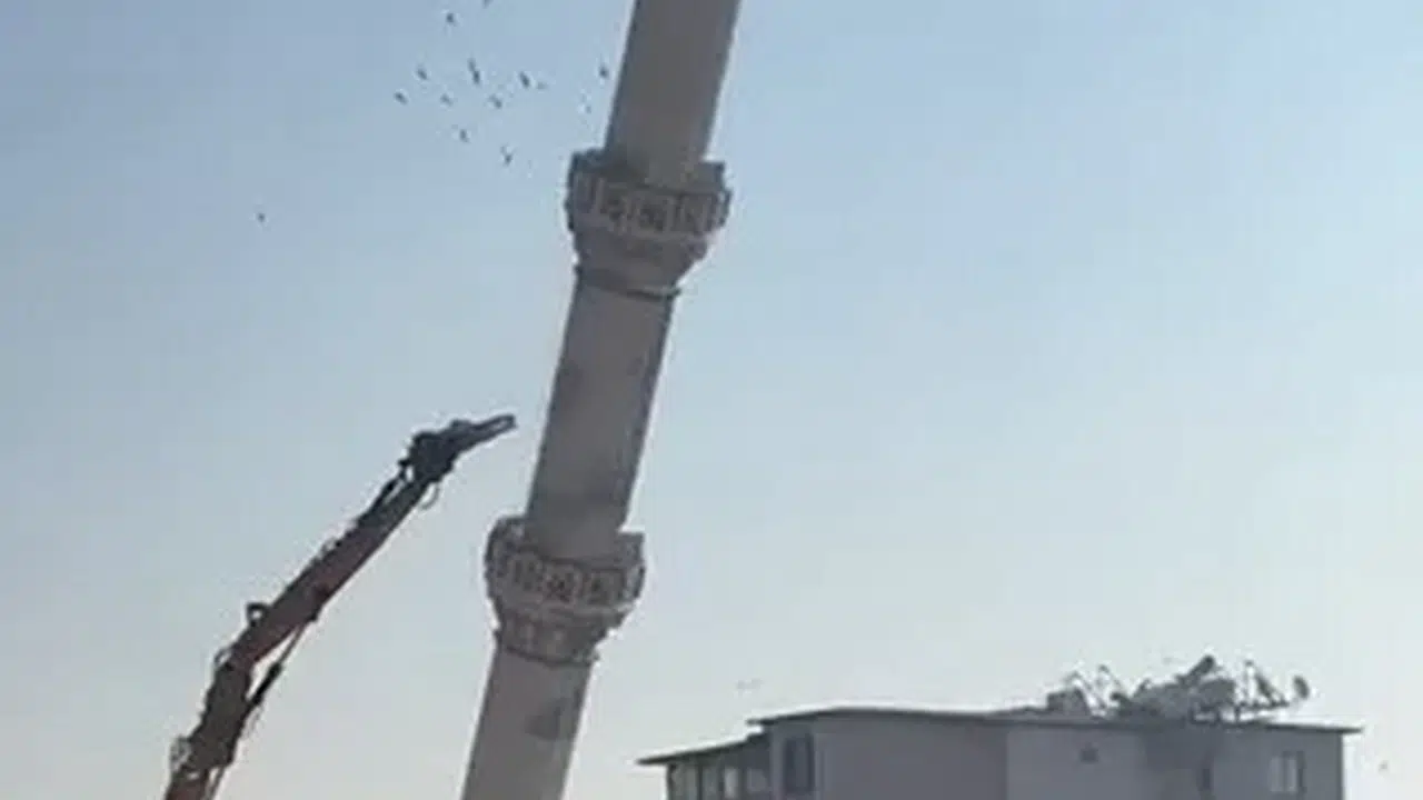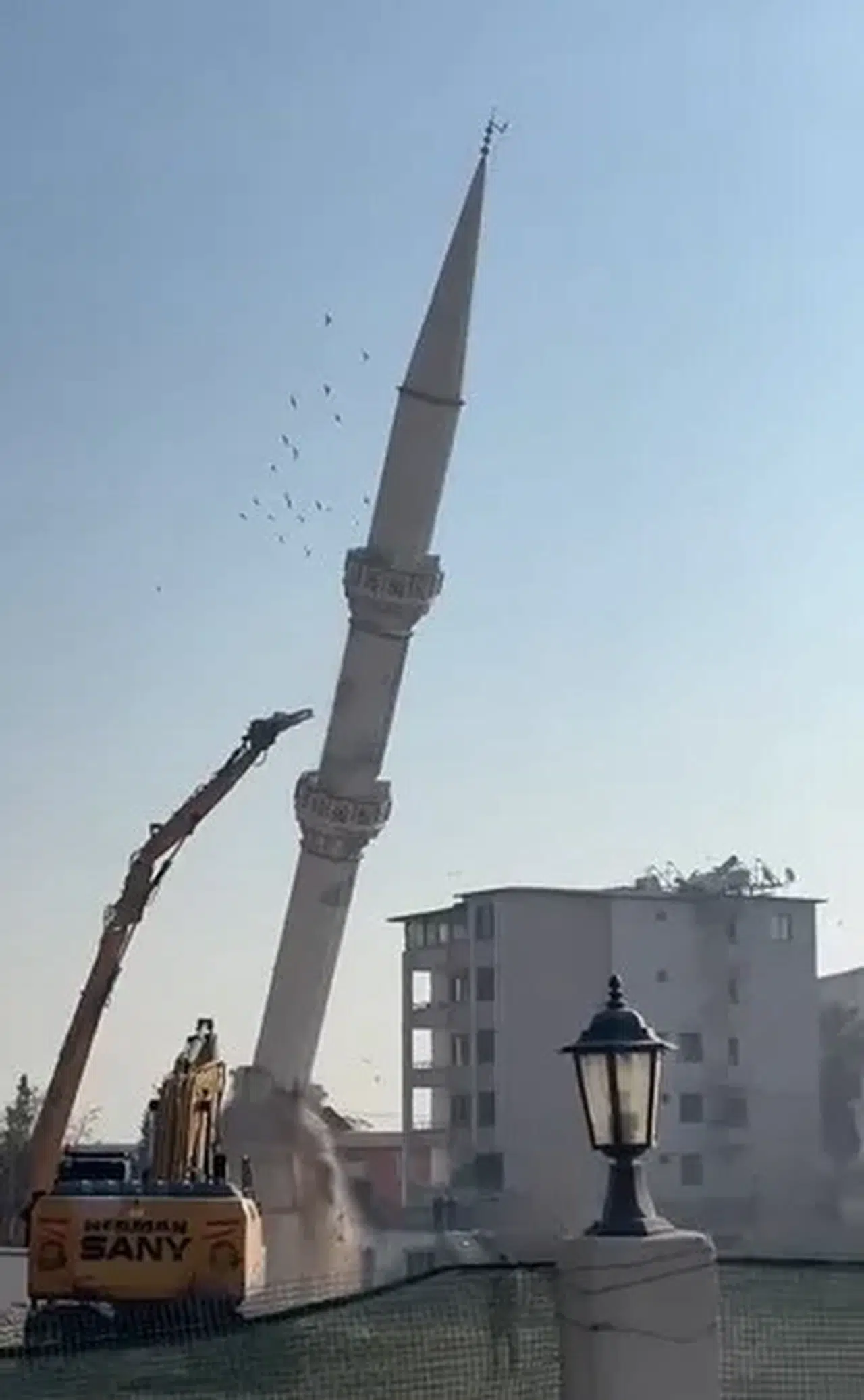 Kesin Karar Ulusal Hasarlı Minare İş Makinesinin Dokunuşuyla Yerle Bir Oldu
