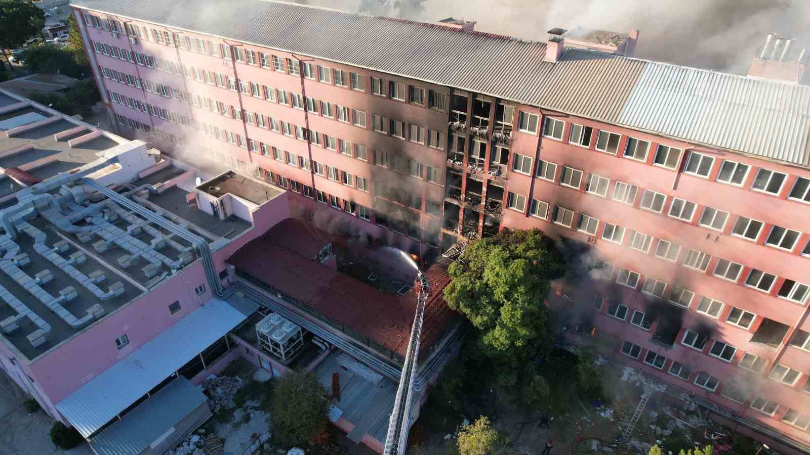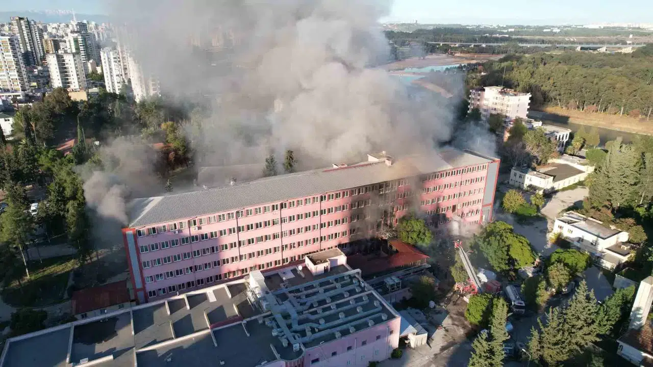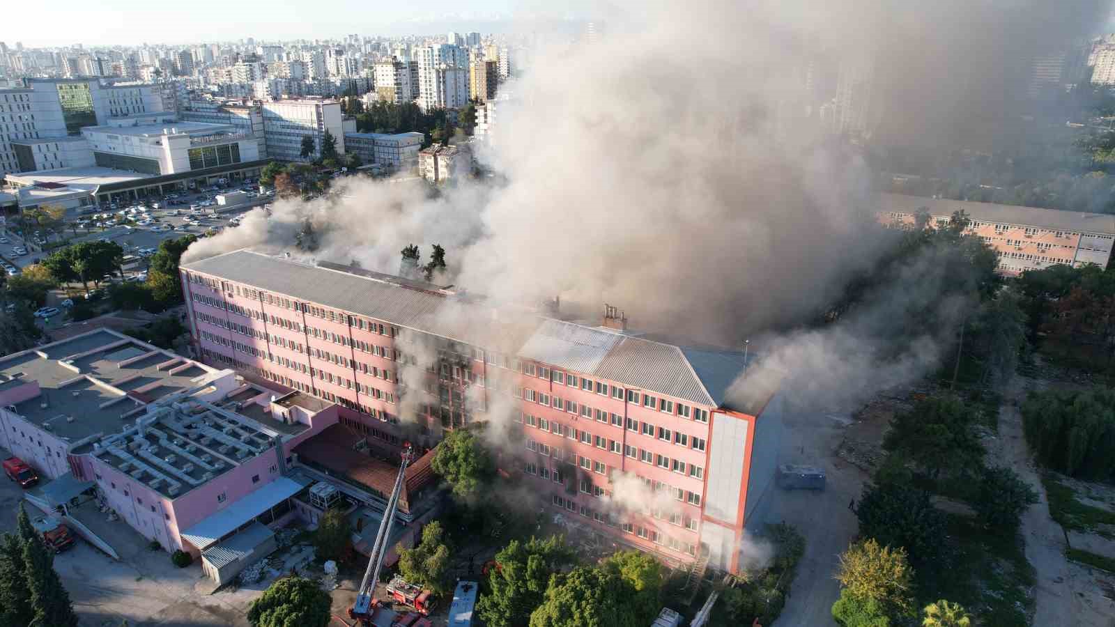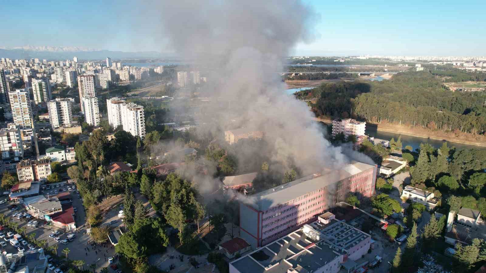 Adana’da eski devlet hastanesinde çıkan yangın dron ile havadan görüntülendi.