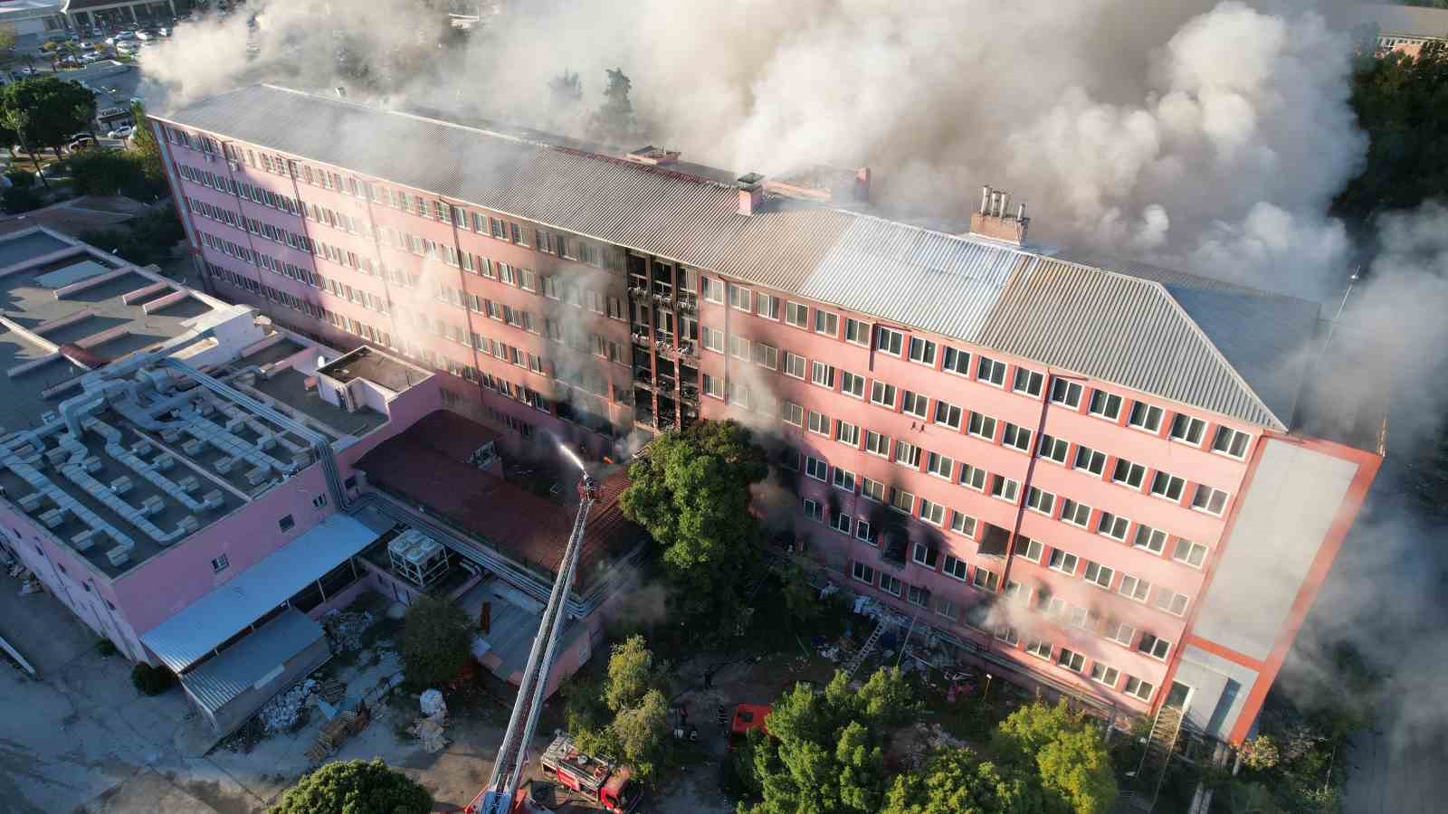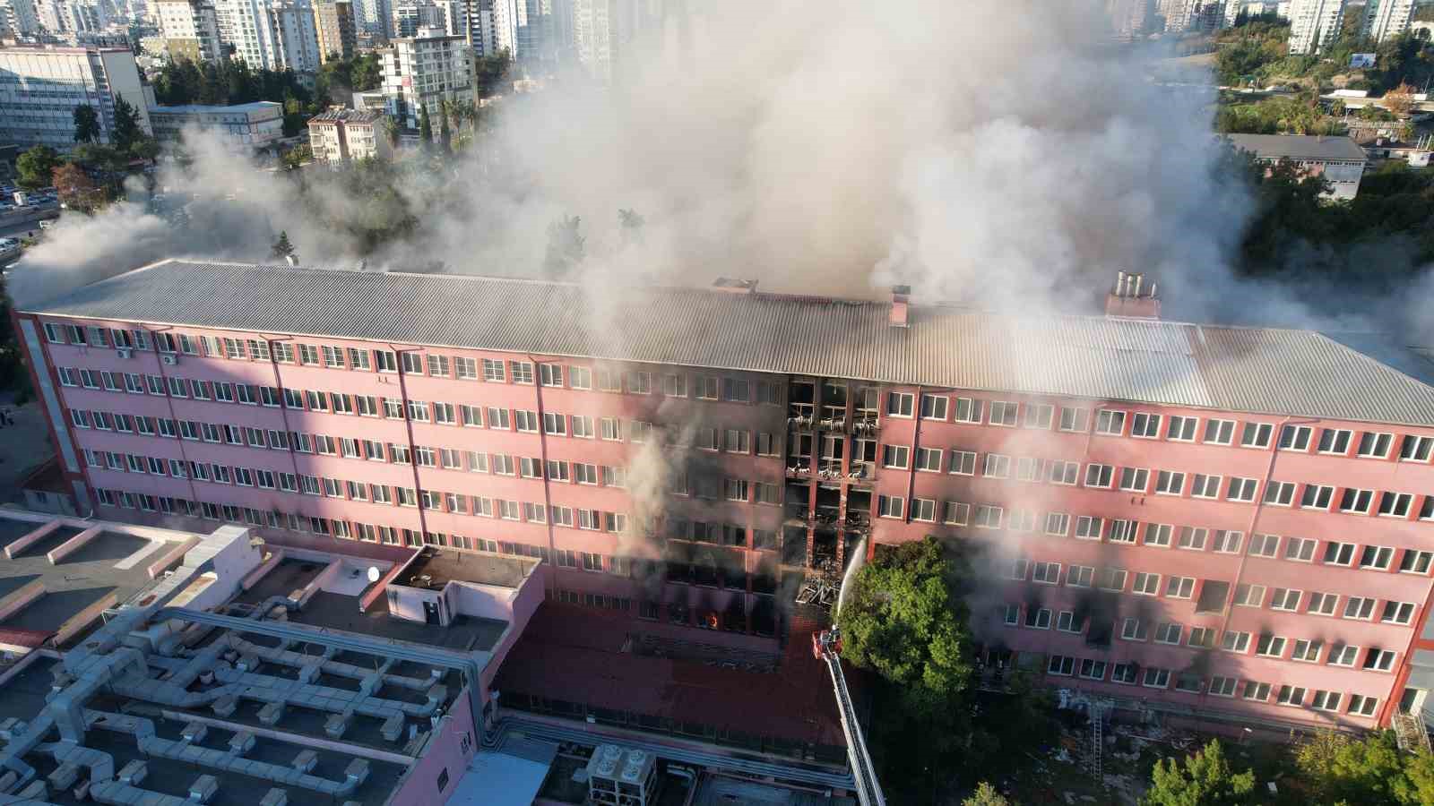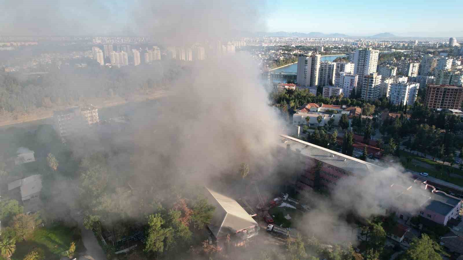 Adana’da eski devlet hastanesinde çıkan yangın dron ile havadan görüntülendi.