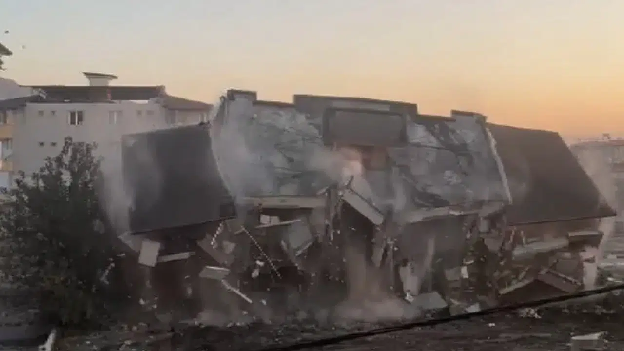 Hatay’da 5 Katlı Binanın Kontrollü Yıkımı Kameraya Yansıdı