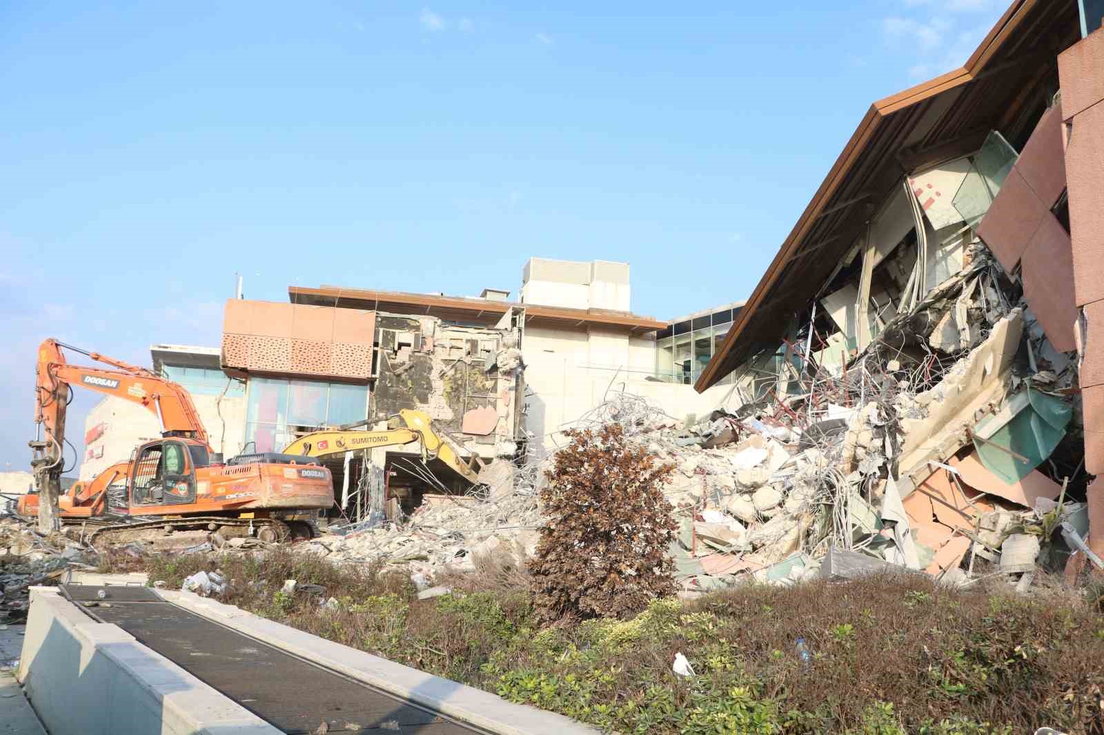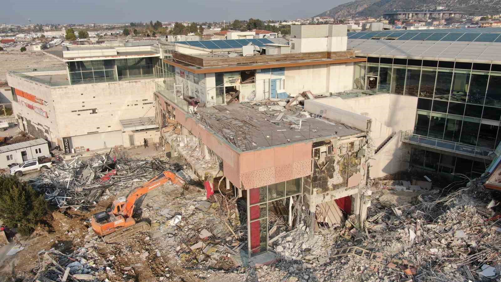 Hatay’ın Antakya ilçesinde 2013 yılında 150 milyon dolar maliyetle inşa edilen ağır hasarlı alışveriş merkezinin yıkımına başlandı.