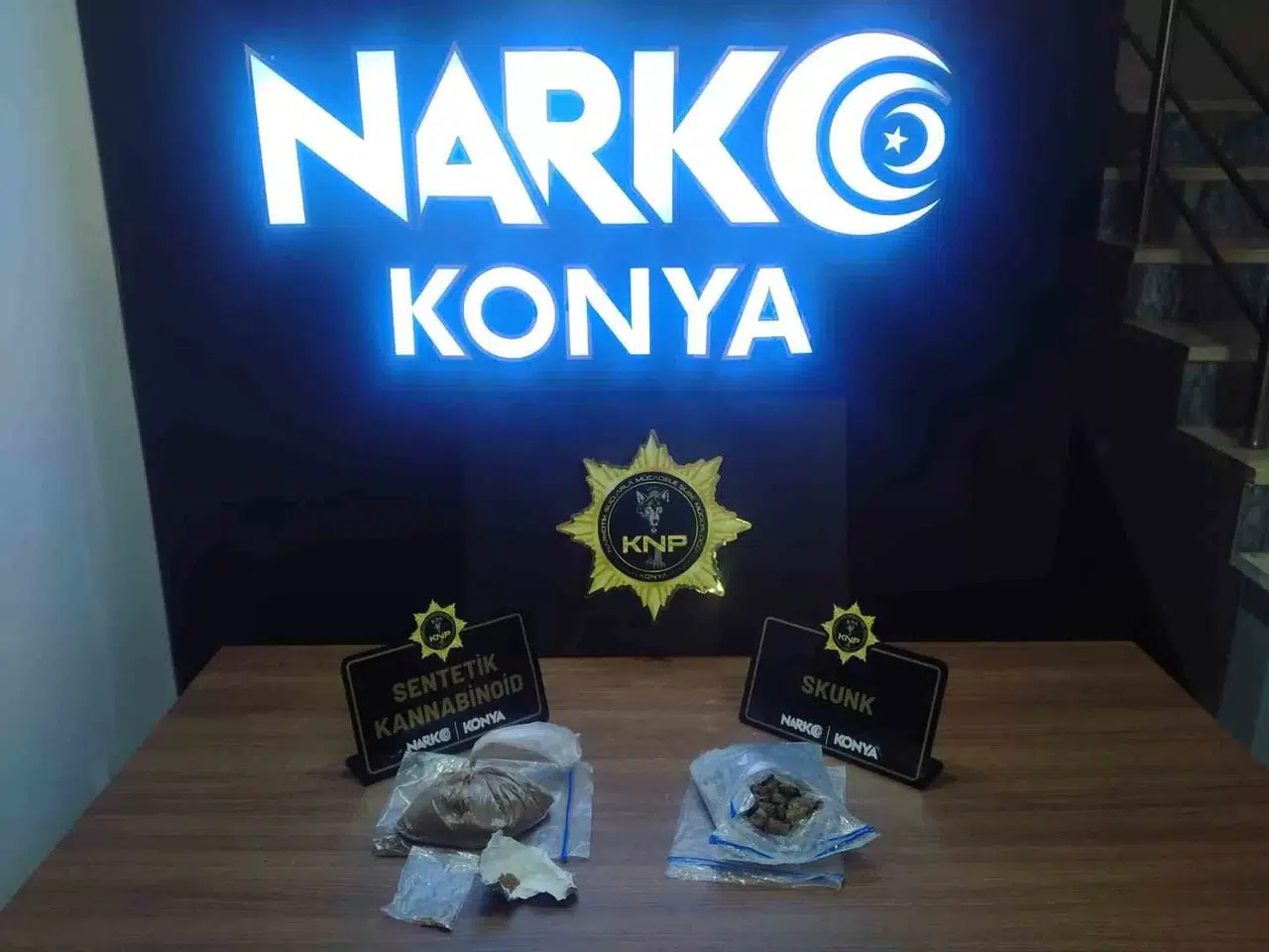 Öte yandan, merkez Selçuklu ilçesinde durdurulan bir otomobilin içerisinde ise, 203 gram skunk ve 3 parça halinde 204 gram sentetik kannabinoid maddesi ele geçirildi. Her iki operasyonda gözaltına alınan 4 şüpheli hakkında "Uyuşturucu Madde Ticareti Yapmak ve Uyuşturucu Madde Kullanmak" suçlarından adli işlem başlatıldı.