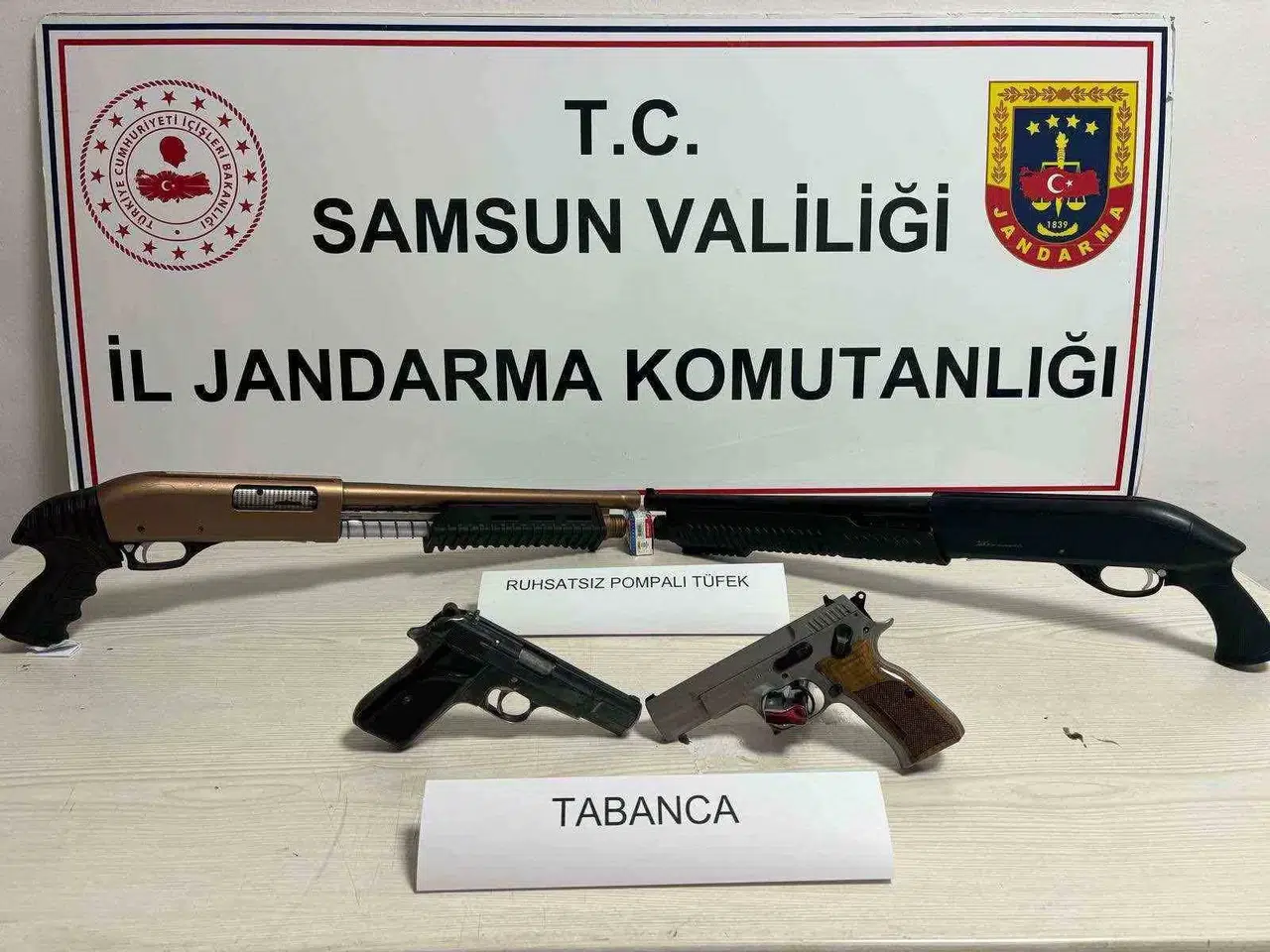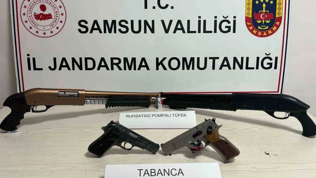 Olay, Samsun’un Vezirköprü İlçesinde meydana geldi. Edinilen bilgiye göre, meskun mahalde havaya ateş edildiği ihbarı üzerine Samsun İl Jandarma Komutanlığı İstihbarat Şube Müdürlüğü ve Vezirköprü İlçe Jandarma Komutanlığı ekipleri ortak çalışma yaptı. Olayla ilgili M.S. ve M.A. isimli şahısların havaya ateş ettiği tespit edildi. Jandarmanın operasyonu sonucu 2 şahıs, 2 adet tabanca ve 2 adet pompalı tüfek ile yakalandılar.
