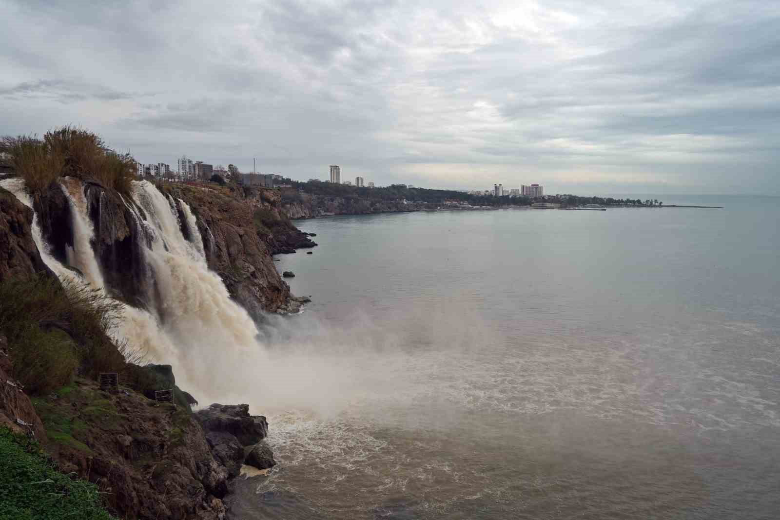 Yağıştan dolayı kentin dünyaca ünlü Düden Şelalesi ise adeta çamur çağladı. Şelalenin denizle buluştuğu alan kahverengiye bürünürken, turistler ve kent sakinleri o anları fotoğraflayarak ölümsüzleştirdi.