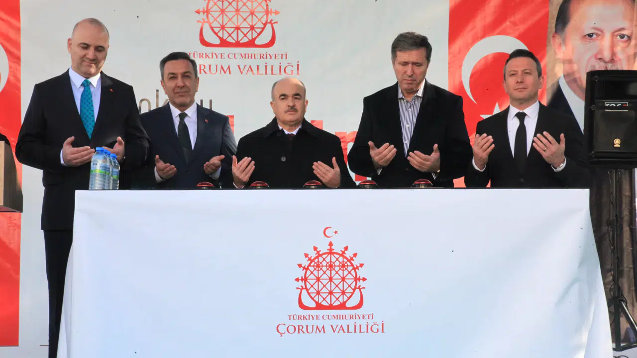 Törende konuşmaların ardından dua edilerek binanın temeline beton döküldü.