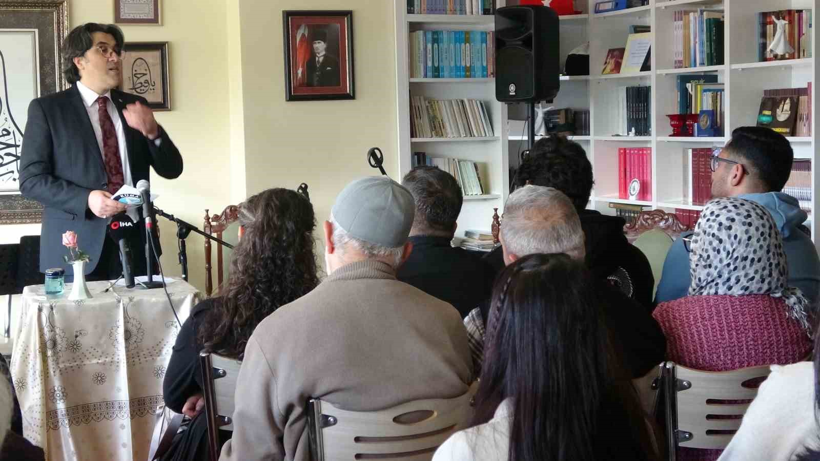Dernek binasındaki etkinlik Mevlana Araştırmaları Kültür Sanat Derneği Başkanı Tekin Uğurel’in sohbeti ile başladı. Nuri Erbay’ın vuslat yıl dönümü ile ilgili konuşmasının ardandan Türk Musikisi Topluluğu Konseri tertiplendi.