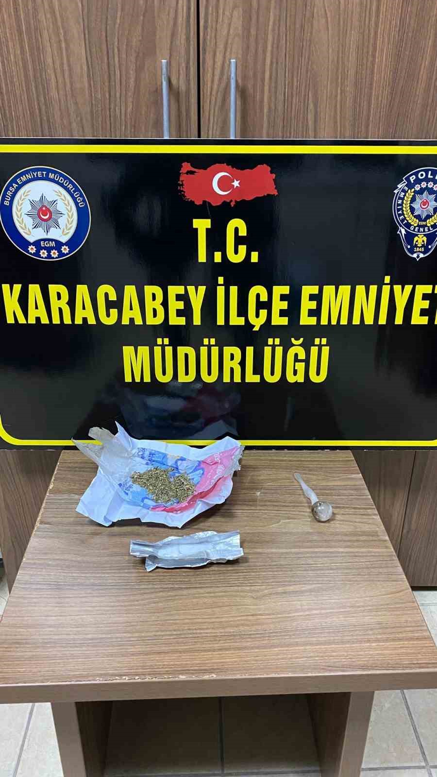 Edinilen bilgiye göre, Karacabey Emniyet Müdürlüğü Asayiş Şube Büro Amirliği Ekipleri, Bursa’dan Karacabey’e seyir halinde olan 16 ECM 20 plakalı çalıntı aracı takibe başladı. Araç Şahinköy civarında durdurulurken, araç sürücüsü Ahmet M. (43) aracı bırakarak bir anda kaçmaya başladı. Kovalamaca sonucunda yakalanan Ahmet M.’nin üstünden, sentetik kannabinoid (bonzai), methamfetaminin maddesi ve pipe ele geçirildi.
