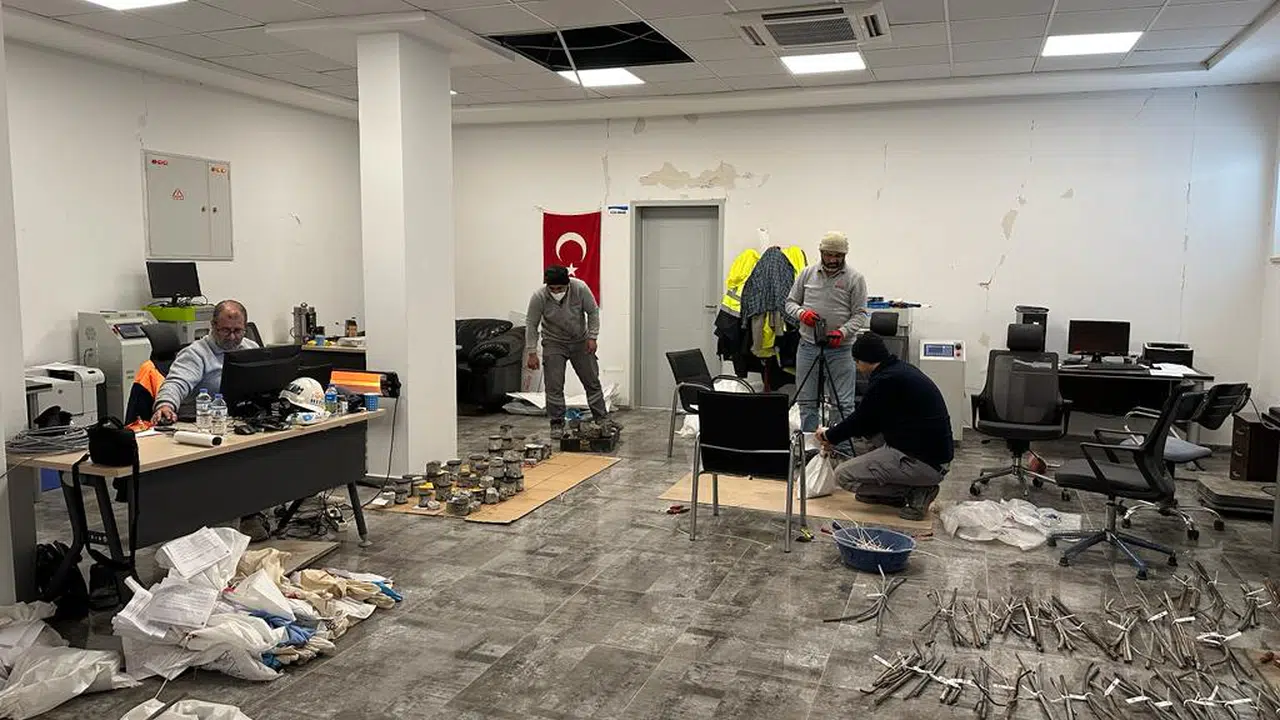 Ekipler, karot ve donatı testleri yapıyor.