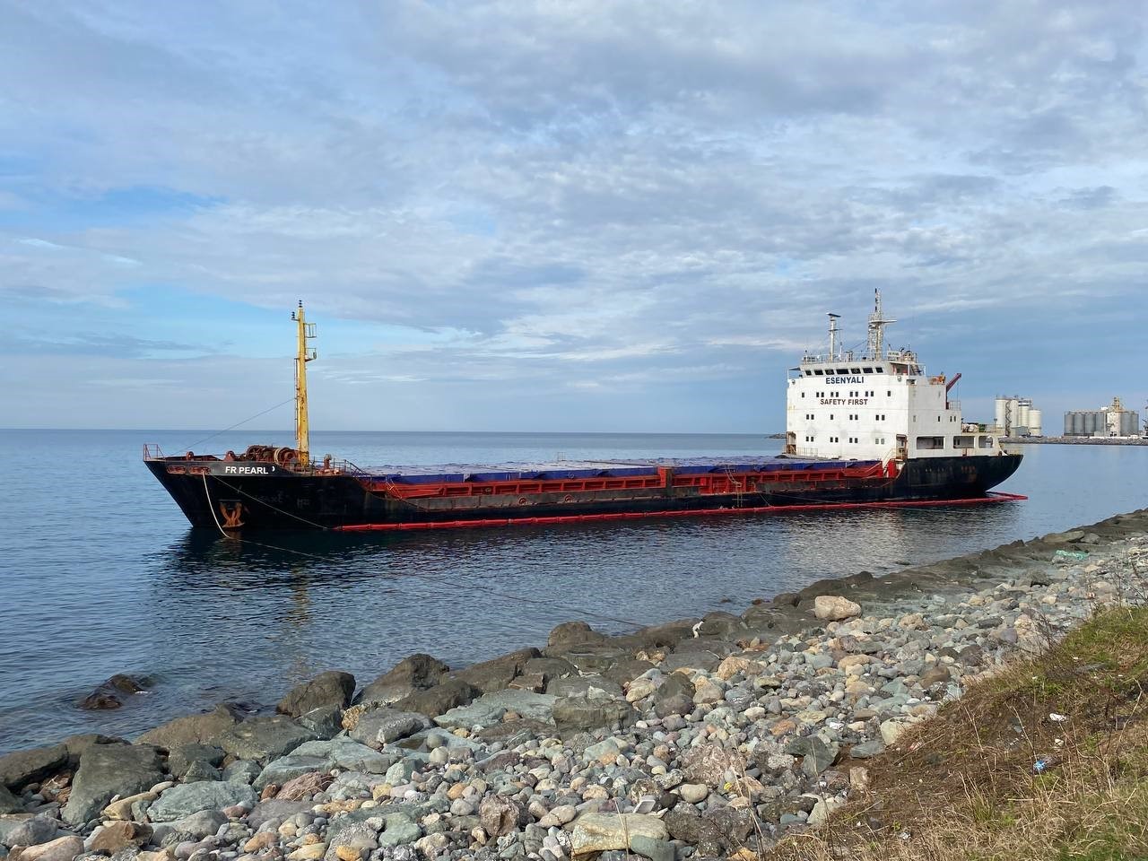 Hopa ilçesinde 27 Kasım 2023 günü fırtına nedeniyle sürüklenerek karaya oturan 13 kişilik mürettebatı sorunsuz tahliye edilen Palau bandıralı "FR Pearl" adlı kuru yük gemisi 40 gündür kıyıda bekletiliyor.