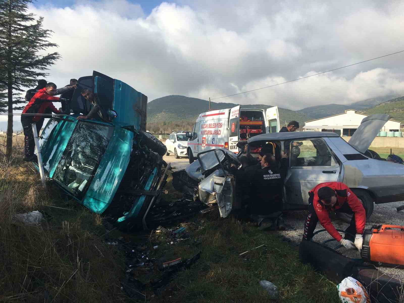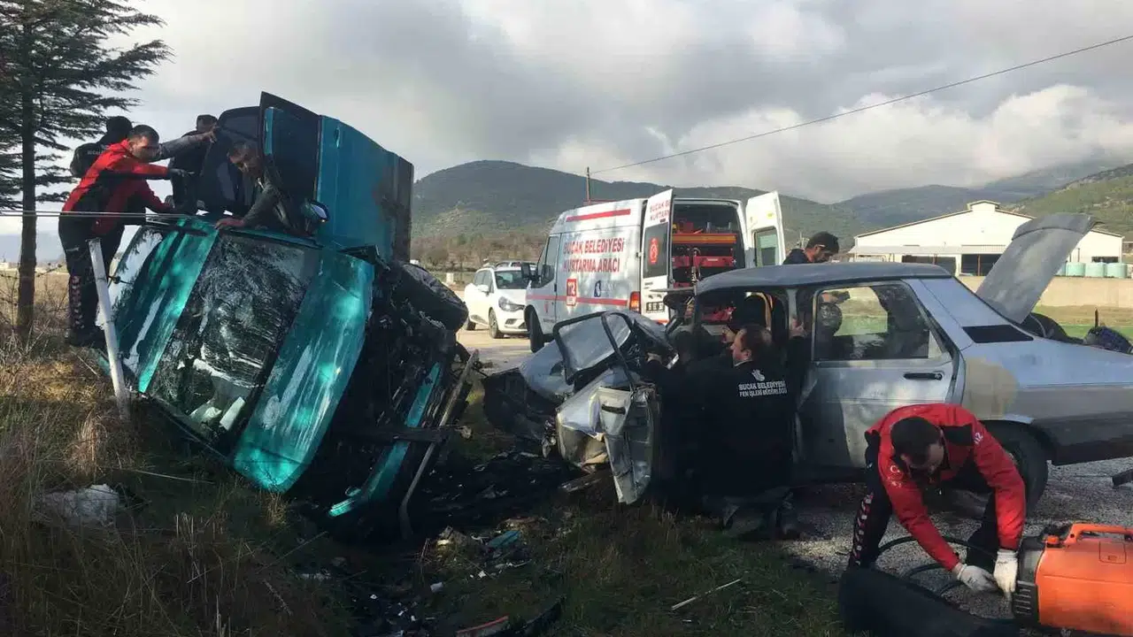 Burdur’un Bucak ilçesinde iki otomobilin kafa kafaya çarpışması sonucu 4 kişi yaralandı. Araçta sıkışan yaralıları kurtarmak için ekipler seferber oldu.