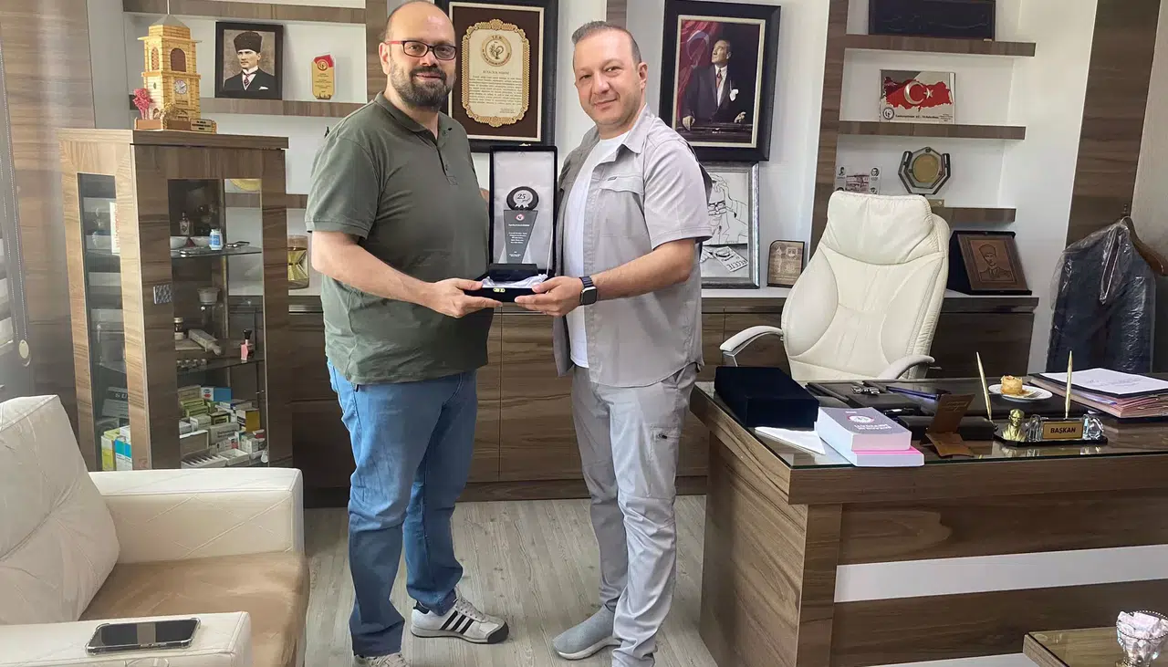 Eczacılık mesleğinde 50’nci yılını dolduran Leblebicioğlu’nu ve 25 yılını dolduran Bilginer’i ziyaret eden Afacan, meslektaşlarına teşekkür etti.