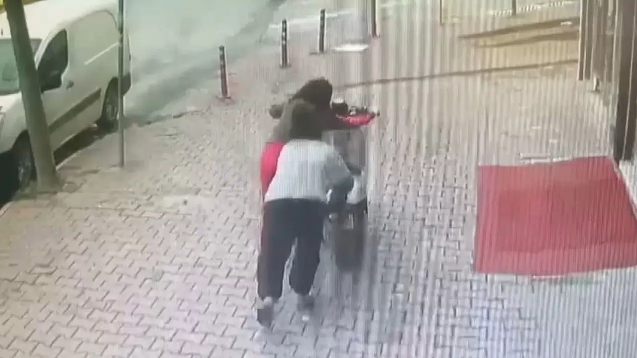 Esenyurt’ta motosikletle bir iş yerinin önüne gelen 3 kişi, gözlerine kestirdikleri elektrikli motosikleti çalmak istedi. Direksiyon kilidini kıran şahıs tekrar motosikletine binerken, iki kız elektrikli motosikleti iterek götürmeye çalıştı. Çevredeki esnafların durumu fark etmesi ile kaçan çocukların o anları ise güvenlik kamerasına yansıdı.