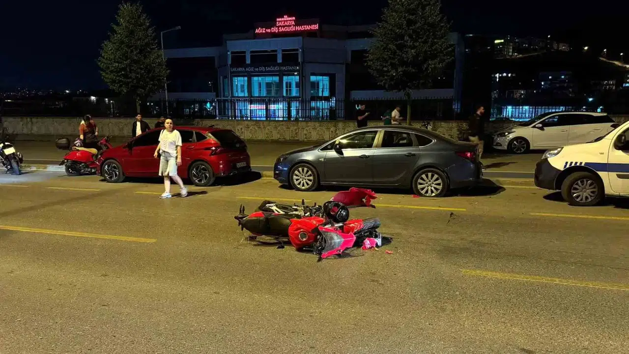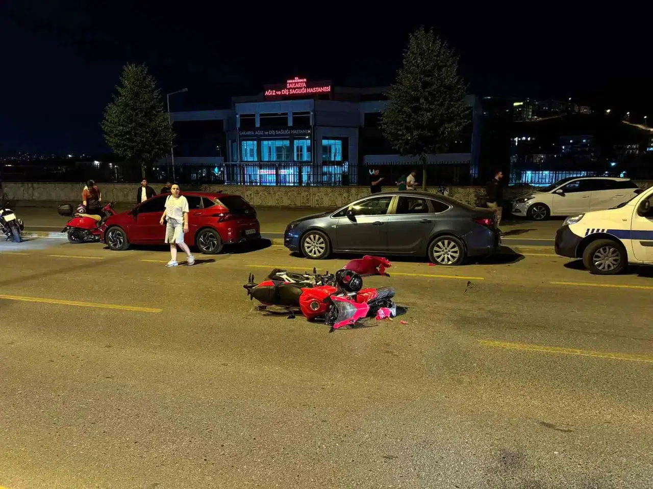 Sakarya’nın Serdivan ilçesinde iki motosikletin karıştığı kazada sürüklenen kadın sürücü otomobilin altına girerek ağır yaralandı.