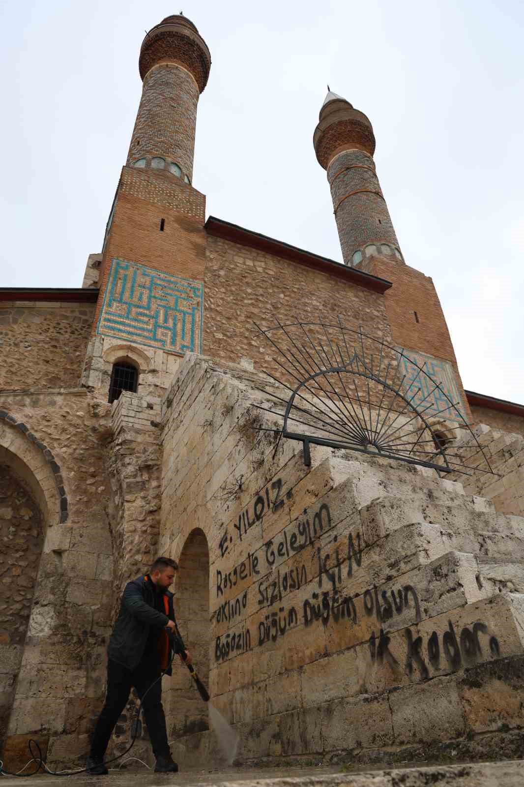 Çifte Minareye Yapılan Saygısızlık Temizlendi