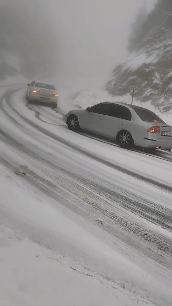 Kar yağışı nedeniyle İnegöl-Domaniç yolu araç trafiğine kapatıldı. Bazı araçlar yolda kalırken, zincir ve kış lastiği takan araçların geçişine izin veriliyor. Bir sürücü, yolda kalan araçları görüntüleyip, diğer sürücüleri kar lastiği ve zincir kullanmaları konusunda uyardı.