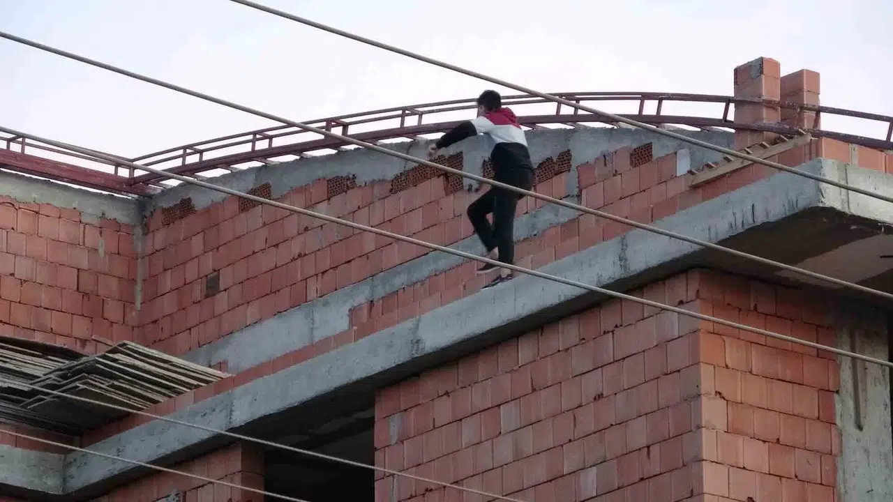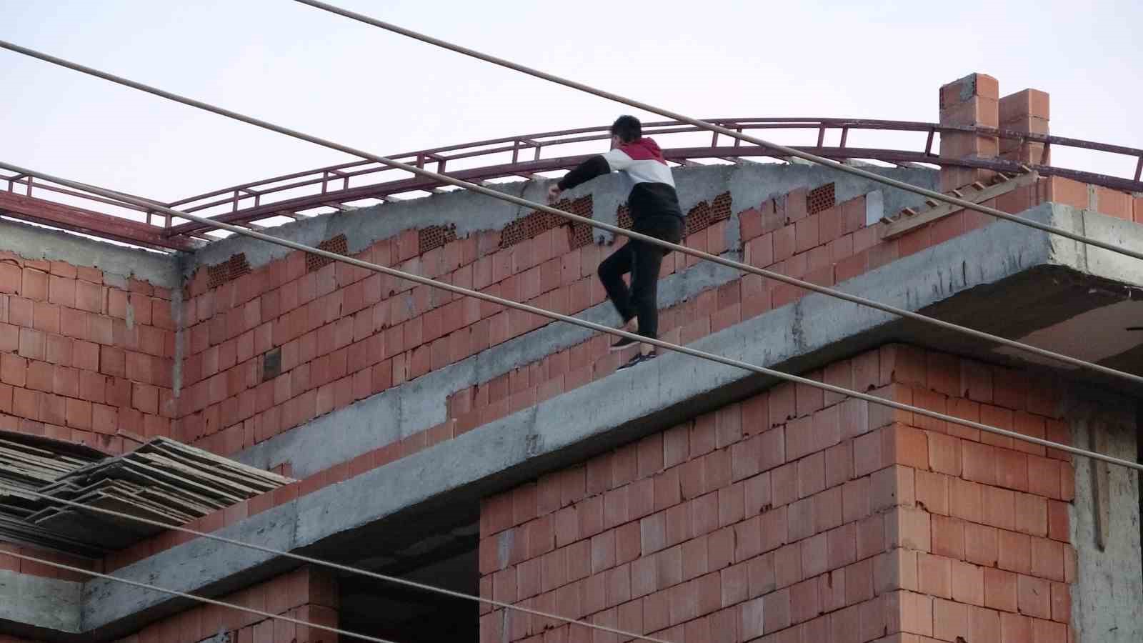 İnşaatın Çatısına Çıkan Kadın, Ekiplere ve Ailesine Ecel Terleri Döktürdü