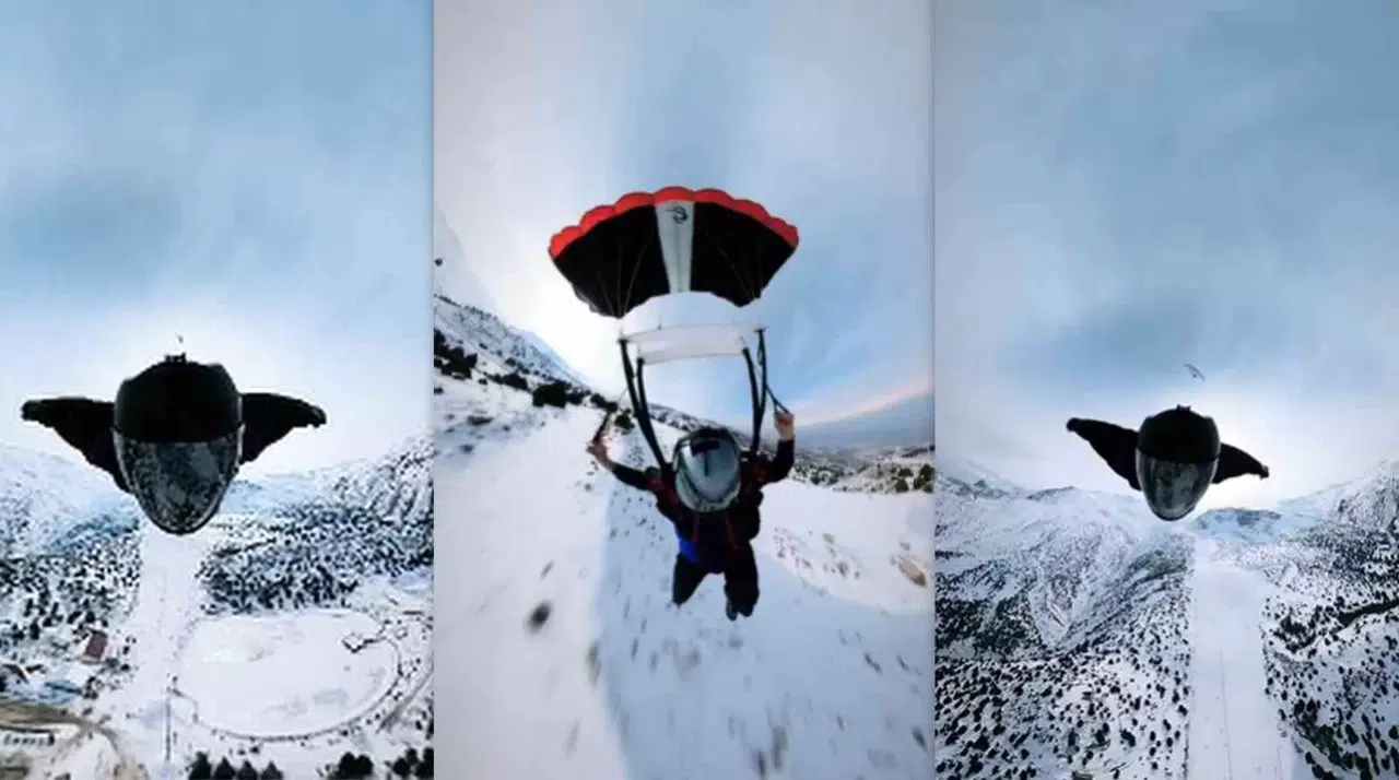 İrlanda’dan Türkiye’ye gelip Erzincan’da bulunan Ergan Kayak Merkezinde bin metreden wingsuit atlayışı yapan İrlandalı sporcu Michael Moran nefes kesti.