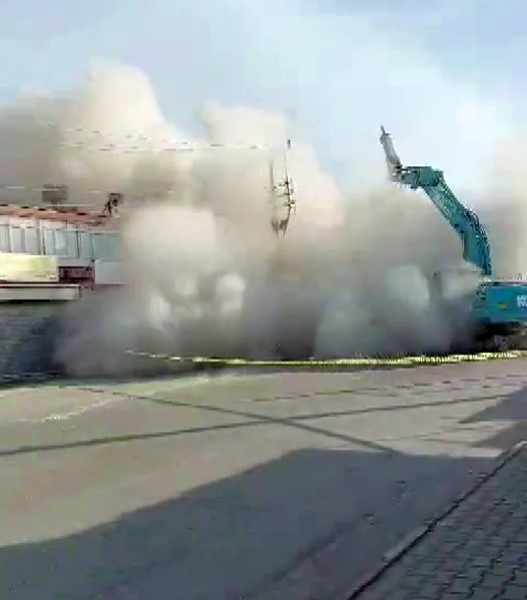 Hatay’ın Dörtyol ilçesinde 5 katlı binanın iş makinesiyle yıkıldığı anlar cep telefonu kamerasına yansıdı.