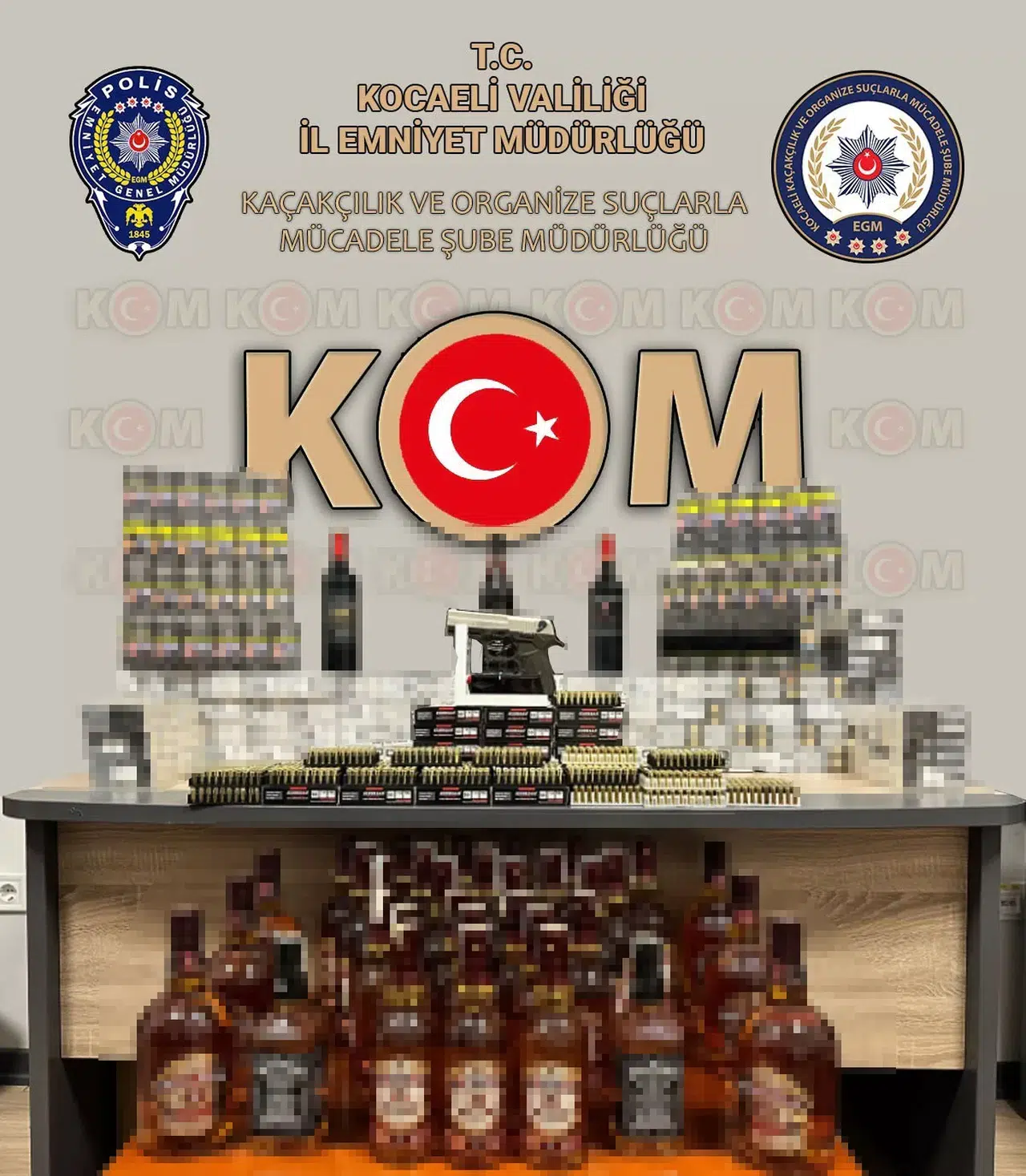 Kaçakçılık ve Organize Suçlarla Mücadele Şube Müdürlüğünce kaçakçılığın men ve takibine yönelik yapılan çalışmalar neticesinde Körfez ilçesinde bulunan bir iş yerinde arama yapıldı. İş yerinde yapılan aramada bin 370 paket kaçak bandrollü sigara, ruhsatsız tabanca, 2 bin 400 tabanca mermisi ve 40 gümrük kaçağı viski ele geçirildi. Malzemelere el konulurken, olayla ilgili iş yeri sahibi hakkında işlem başlatıldı.