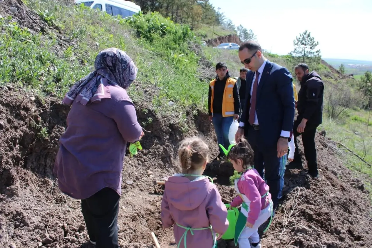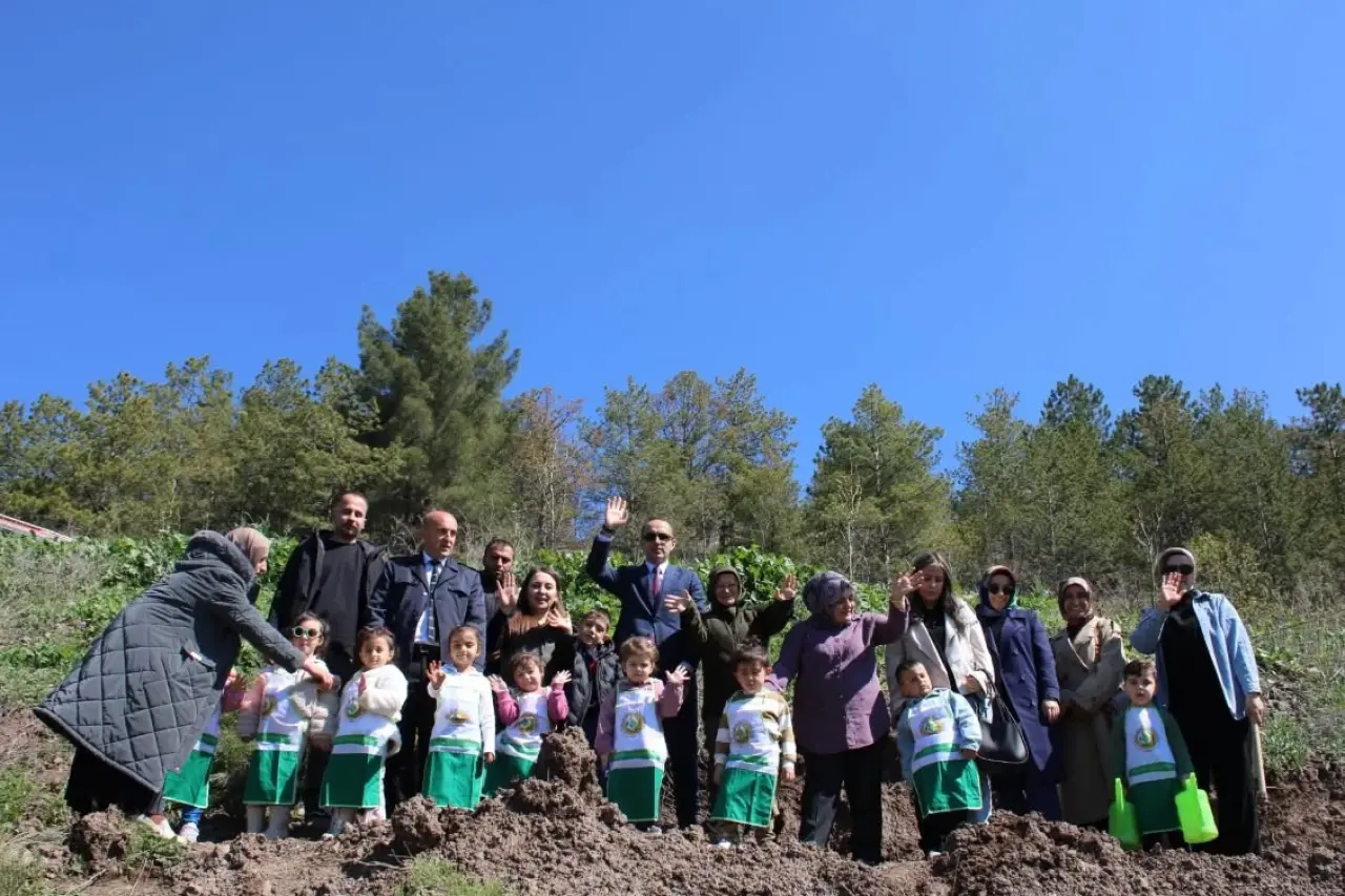 Kaymakam Polat ve öğretmenlerinin yardımıyla kendi fidanlarını diken çocuklar renkli görüntüler oluşturdu.