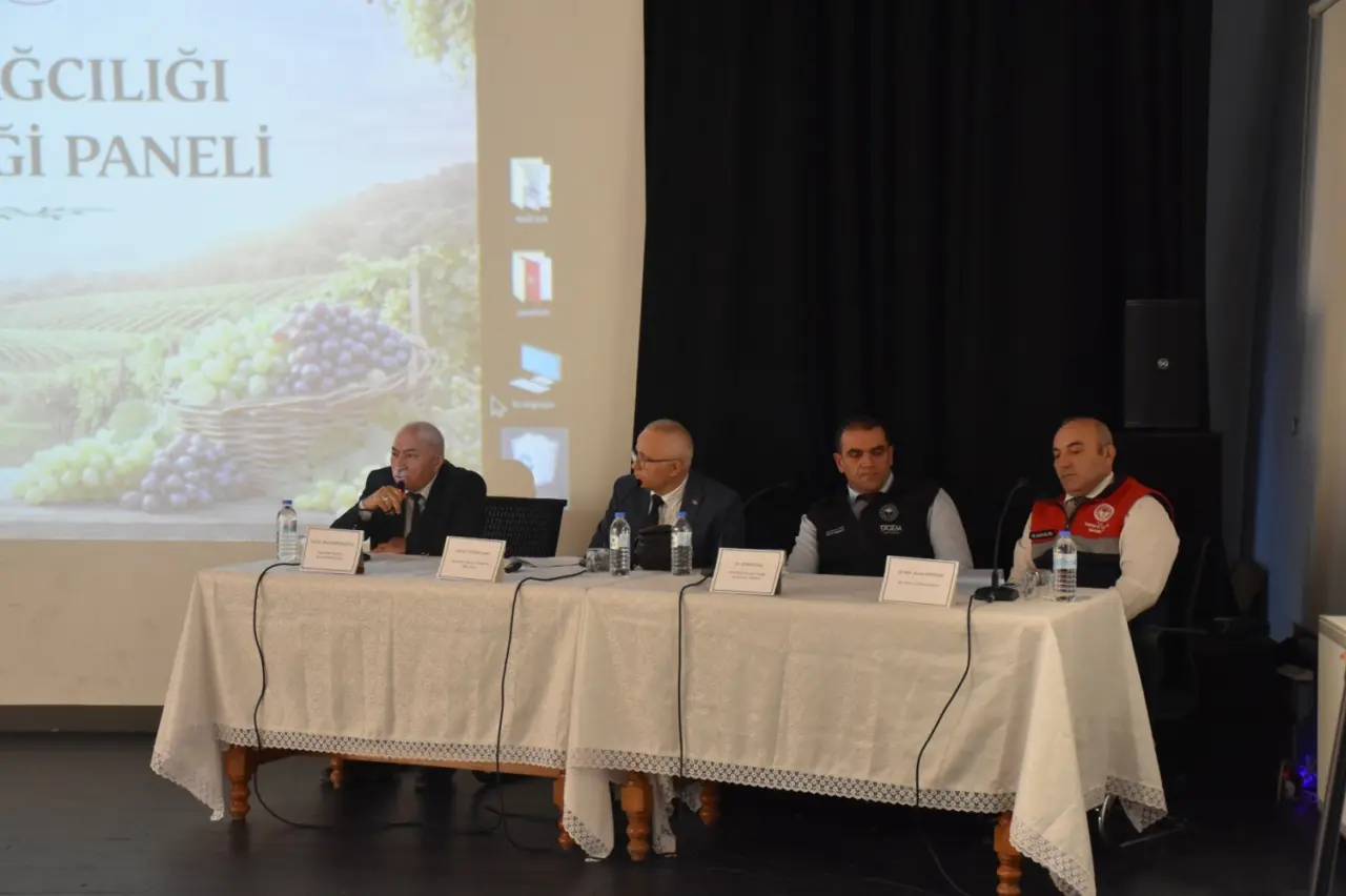 Akademisyenler ve ilgili kurum temsilcilerinin söz aldığı panelde Gazi Osmanpaşa Üniversitesi Ziraat Fakültesi Öğretim Üyesi Prof. Dr. Rüstem Cangi, Orta Karadeniz Geçit Kuşağı Tarım Araştırma Enstitüsü Müdürü Dr. Duran Kılıç ve İlçe Tarım ve Orman Müdürü Murat Karaslan tarafından katılımcılara bağcılığın güncel durumunu özetleyen kapsamlı sunumlar gerçekleştirildi.