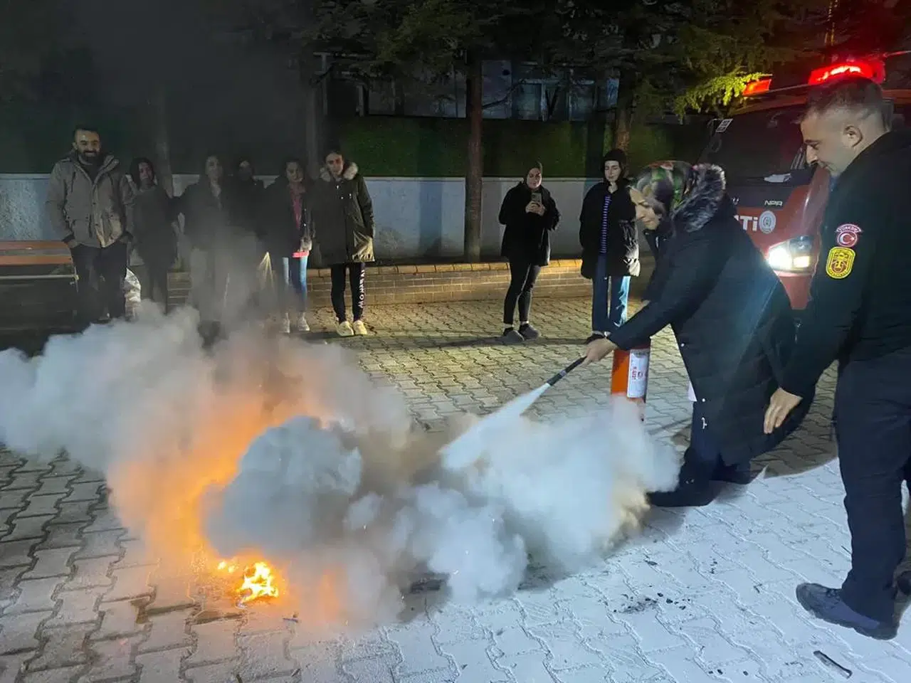 Eğitimde ayrıca, yangın çeşitleri ve yangın tüpünün nasıl kullanıldığı da öğrencilere anlatıldı.