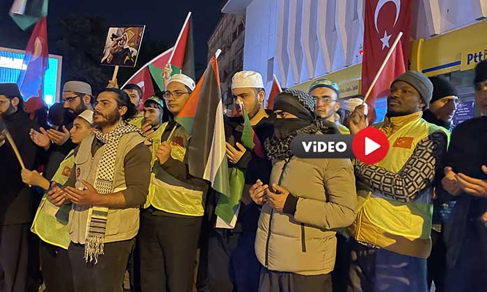 Açıklamanın ardından Filistin'in kurtuluşu için dua edildi. (AA)