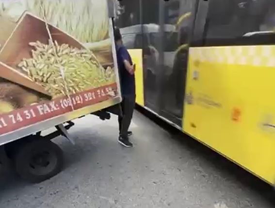 Kağıthane’de park halindeki kamyonetten yolu göremeyen bir kişi, karşıya geçmek isterken süratle gelen otobüsün altında kalmaktan kıl payı kurtuldu. Olaya tanık olan bir motosiklet sürücüsü ise kıl payı kurtulan kişiye dikkatli olmasını söyledikten sonra ters şeritte ilerlemeye devam etti. Yaşananlar kameraya yansıdı.