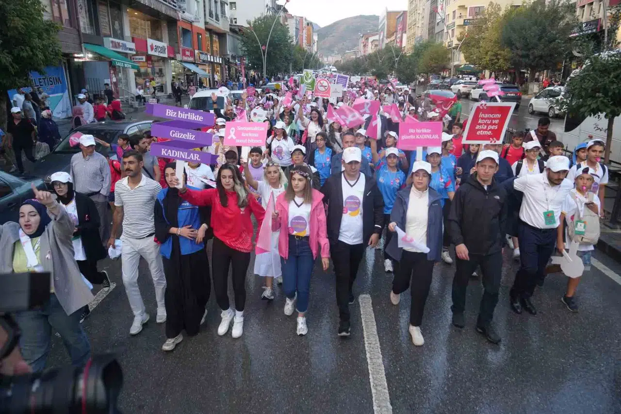 Muş’ta Genç Birikim Derneği tarafından düzenlenen "11. Uluslararası Onkoloji Günleri” çerçevesinde dünyanın farklı ülkelerinden ve il dışından gelen gönüllüler, meme kanserine dikkati çekmek için istasyon caddesi üzerinde yürüyüş düzenledi. Pembe bayrak sallayan gönüllü gençler, şarkılar eşliğinde Millet Bahçesi’ne kadar yürüdü.