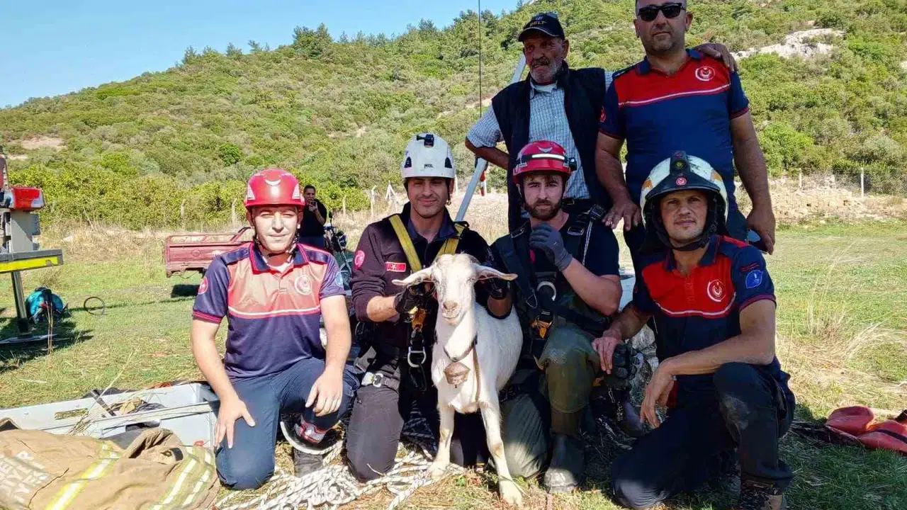 Menderes’te bir köylünün yardımına koşan İzmir Büyükşehir Belediyesine bağlı itfaiye ekipleri, 25 metrelik kuyuya düşen keçiyi kurtararak sahibine teslim etti.