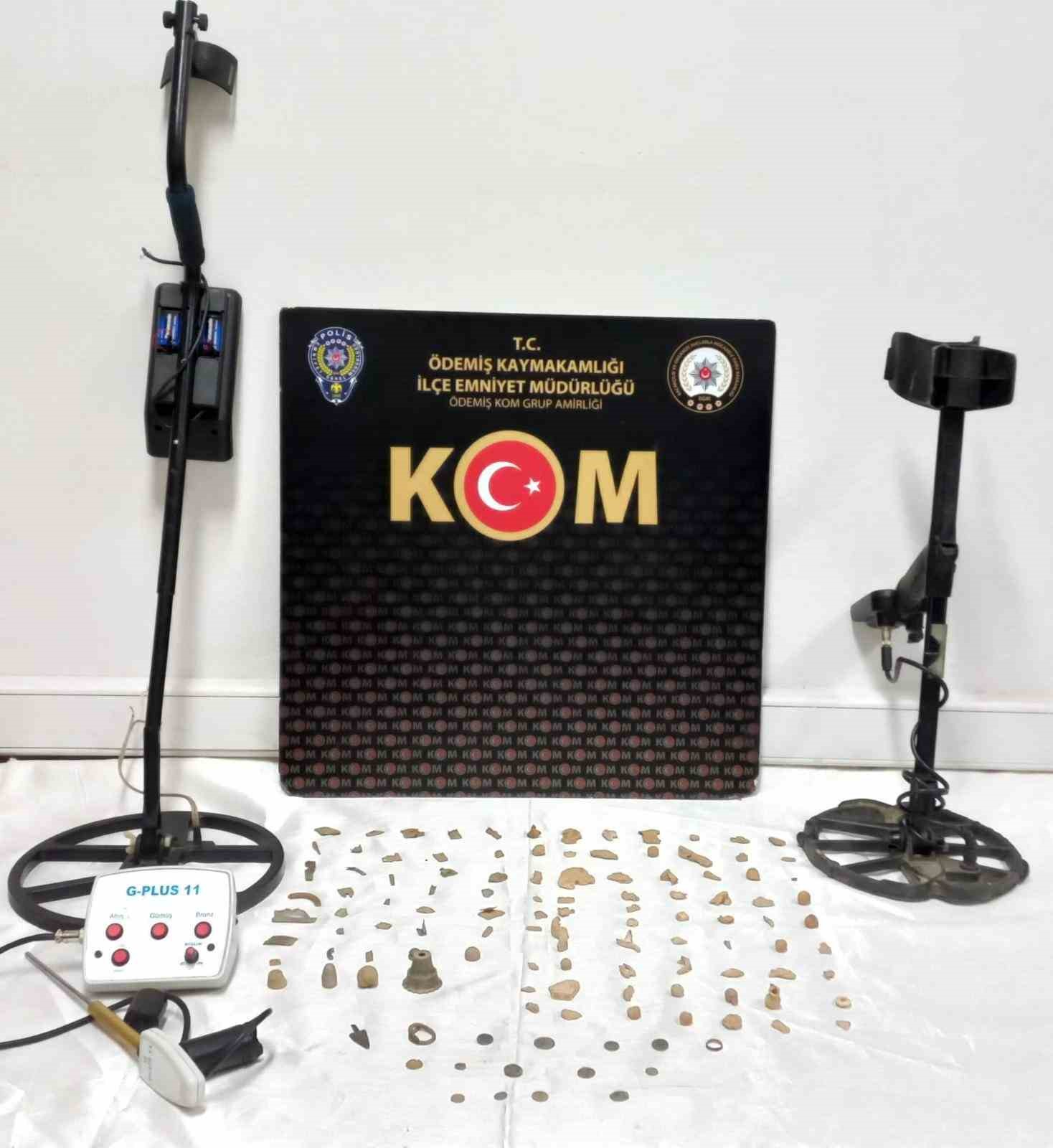 Ödemiş Kaçakçılık ve Organize Suçlarla Mücadele Grup Amirliği ekipleri, ilçede tarihi eser kaçakçılığı yaptığı belirlenen 2 kişiyi yakalamak için çalışma başlattı. Belirlenen adrese gerçekleştirilen operasyonda 108 obje, 13 sikke ve 3 dedektör ele geçirildi. Olayla ilgili S.Y. ve İ.Y. adlı şüpheliler gözaltına alındı. Şüphelilerin emniyetteki işlemlerinin sürdüğü öğrenildi.