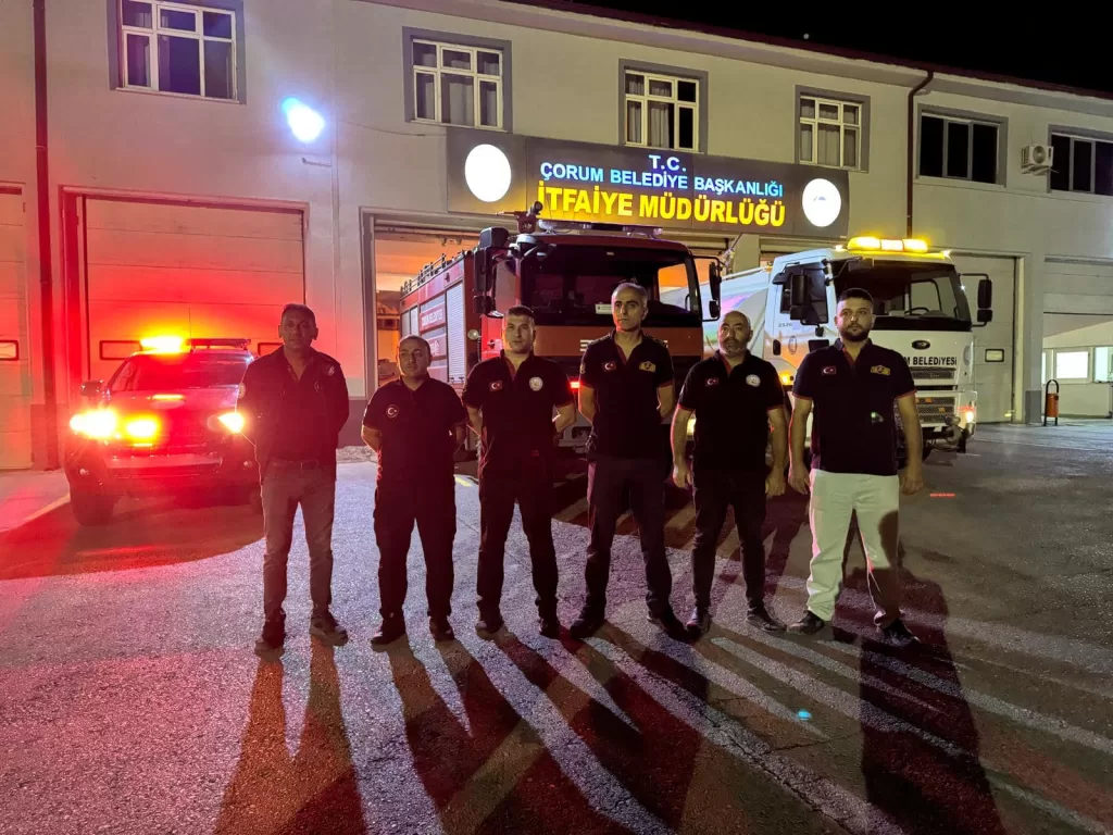 İzmir'in Menderes ilçesinde çıkan orman yangınıyla mücadeleye katılmak üzere Çorum'dan 11 personel ve 5 araçtan oluşan ekibin gönderildiği bildirildi.