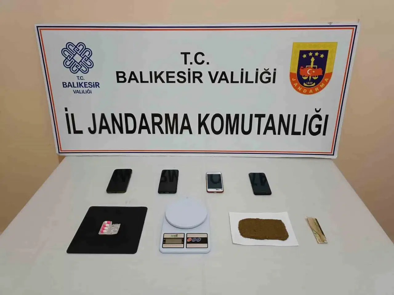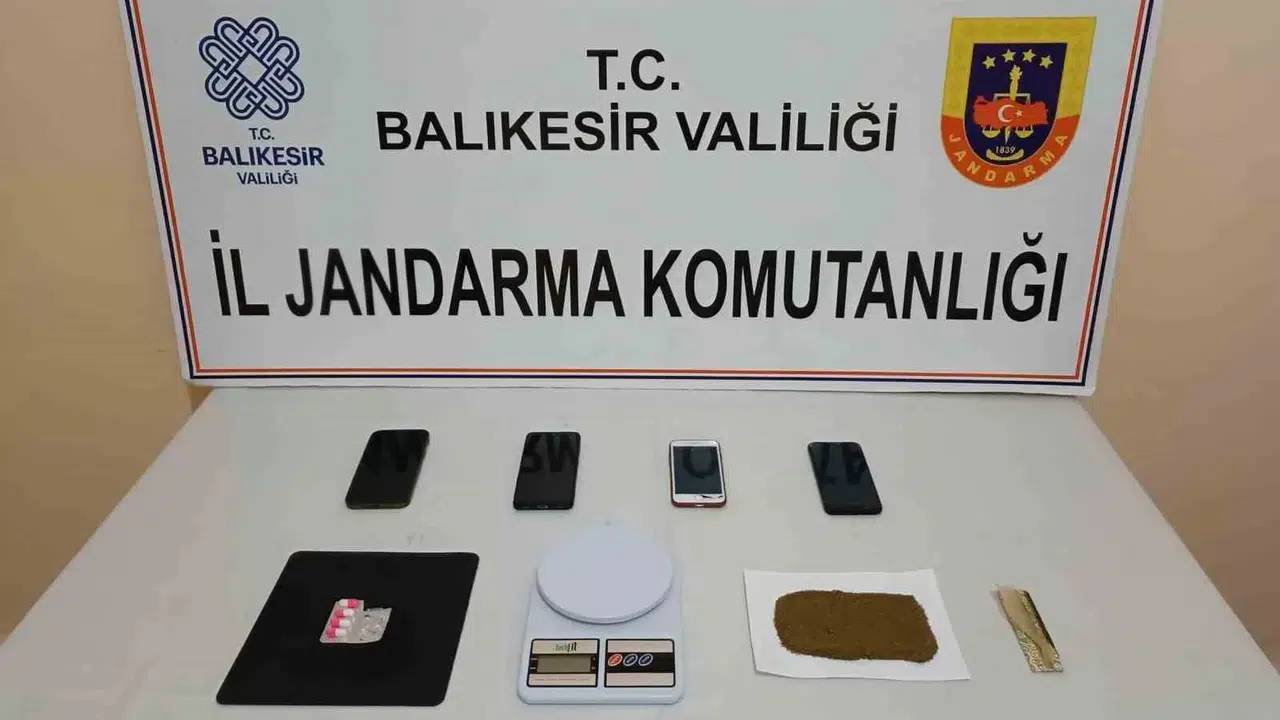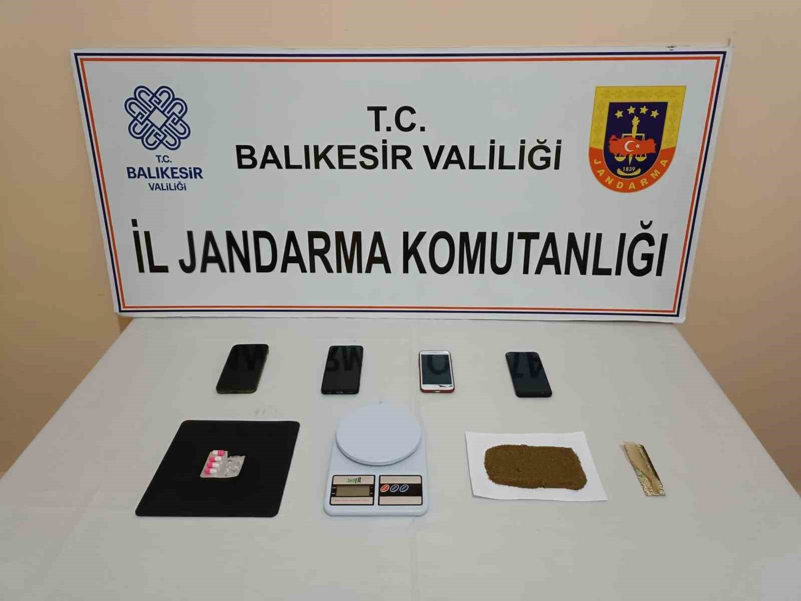 Balıkesir İl Jandarma Komutanlığına bağlı ekipler, gerçekleştirdikleri istihbari çalışmalar neticesinde U.Y. (26) isimli erkek şahsın İzmir’den aldığı uyuşturucu maddeleri Balıkesir’in Sındırgı ilçesine getirerek satış yaptığını tespit etti. Ekipler şüphelinin Sındırgı ilçesi Cami Cedid mahallesindeki ev ve iş yerine arama kararı ile gerçekleştirdikleri operasyondan; 50 gram toz esrar, 4 adet symra sentetik hap, bir hassas terazi, 4 cep telefonu bir paket esrar sarma kağıdı ele geçirdi.