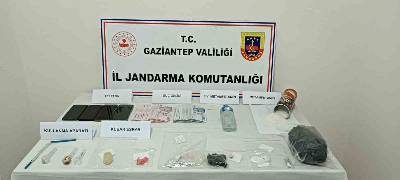 Yapılan aramalarda ise 1 kilo 50 gram metamfetamin, 120 gram sıvı metamfetamin, 15 gram kubar esrar, 44 bin 885 TL suç geliri para, 4 adet uyuşturucu kullanma aparatı, 4 adet cep telefonu ve 2 adet uyuşturucu naklinde kullanılan araç ele geçirildi.