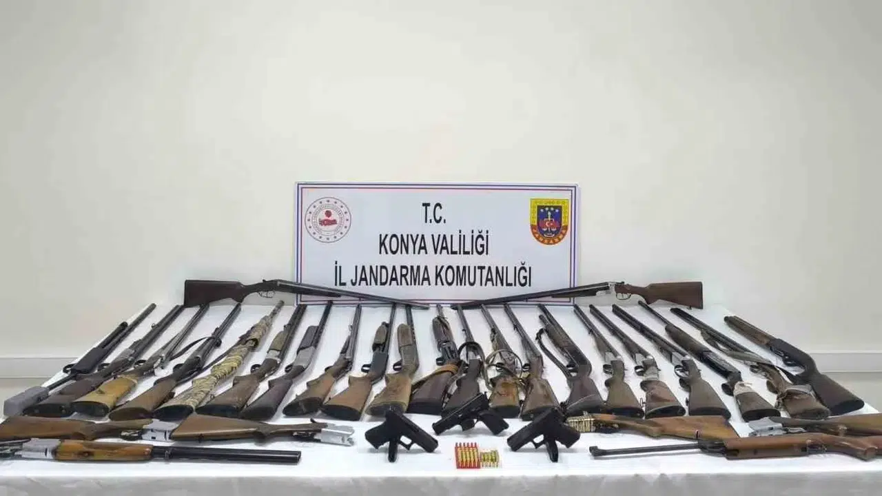 Konya’nın Beyşehir ilçesinde jandarma ekiplerince belirlenen bir iş yerine yapılan baskında çok sayıda silah ele geçirildi.