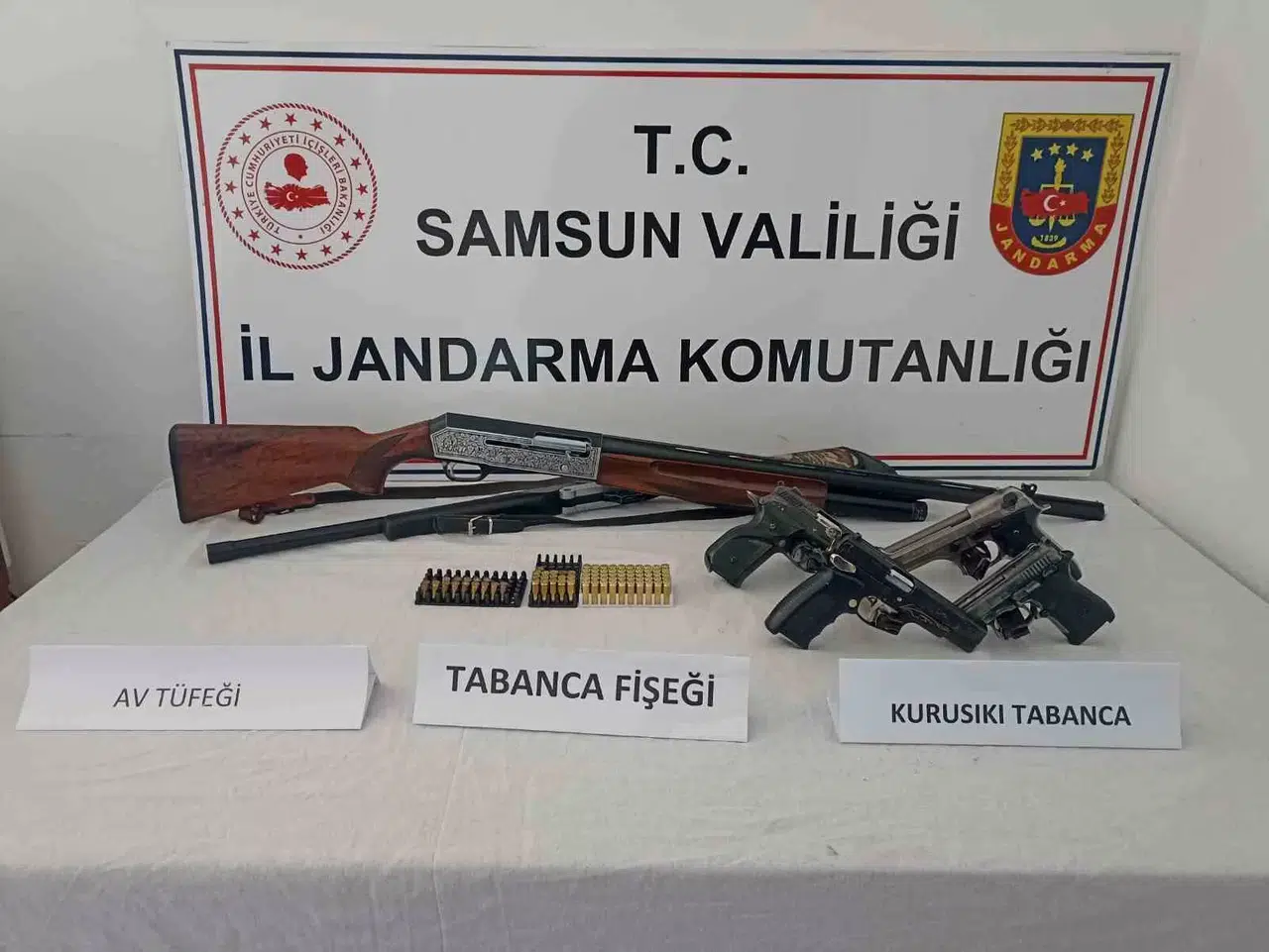 Edinilen bilgiye göre, Çarşamba ilçesinde M.S. ve G.S. isimli şahısların evlerinde silah, mühimmat ve uyuşturucu madde olduğu bilgisi alındı. Çarşamba İlçe Jandarma Komutanlığı ve Çarşamba Jandarma Suç Araştırma Timi (JASAT) ekiplerinin ortak faaliyeti neticesinde iki farklı adreste eş zamanlı yapılan aramada çok sayıda suç unsuru ele geçirildi. Aramada, 3 adet ruhsatsız av tüfeği, 4 adet ruhsatsız kurusıkı tabanca, 66 adet 9 mm. Tabanca fişeği, 14 adet 7.65 mm. tabanca fişeği ve 41 adet kenevir tohumu ele geçirildi.