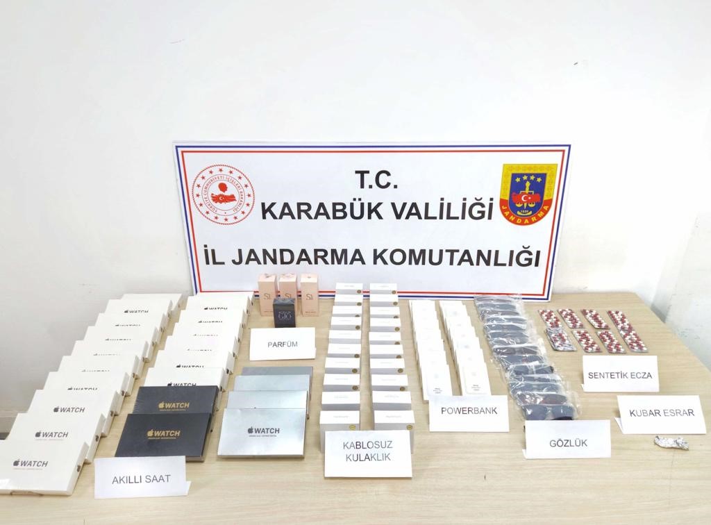 Edinilen bilgiye göre, İl Jandarma Komutanlığı ekipleri tarafından 100. Yıl Mahallesi’nde yapılan operasyonda 4 şahsın ikametgahlarında ve araçlarında arama yapıldı. Yapılan aramalarda, 118 adet sentetik uyuşturucu hap, 2,2 gram kubar esrar, 24 adet akıllı saat, 24 adet kablosuz kulaklık, 15 adet power bank, 4 adet parfüm ve 15 adet güneş gözlüğü ele geçirildi.