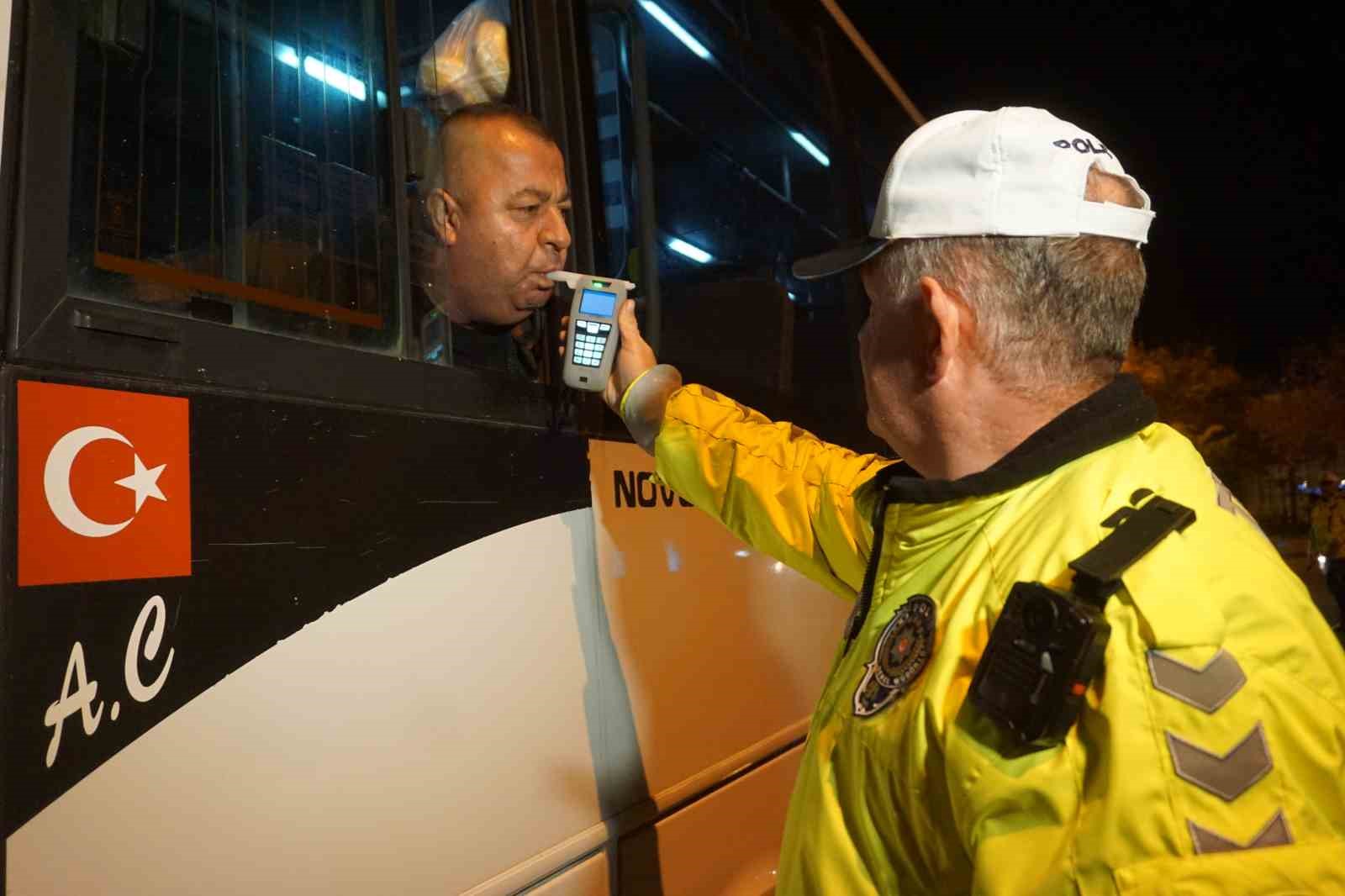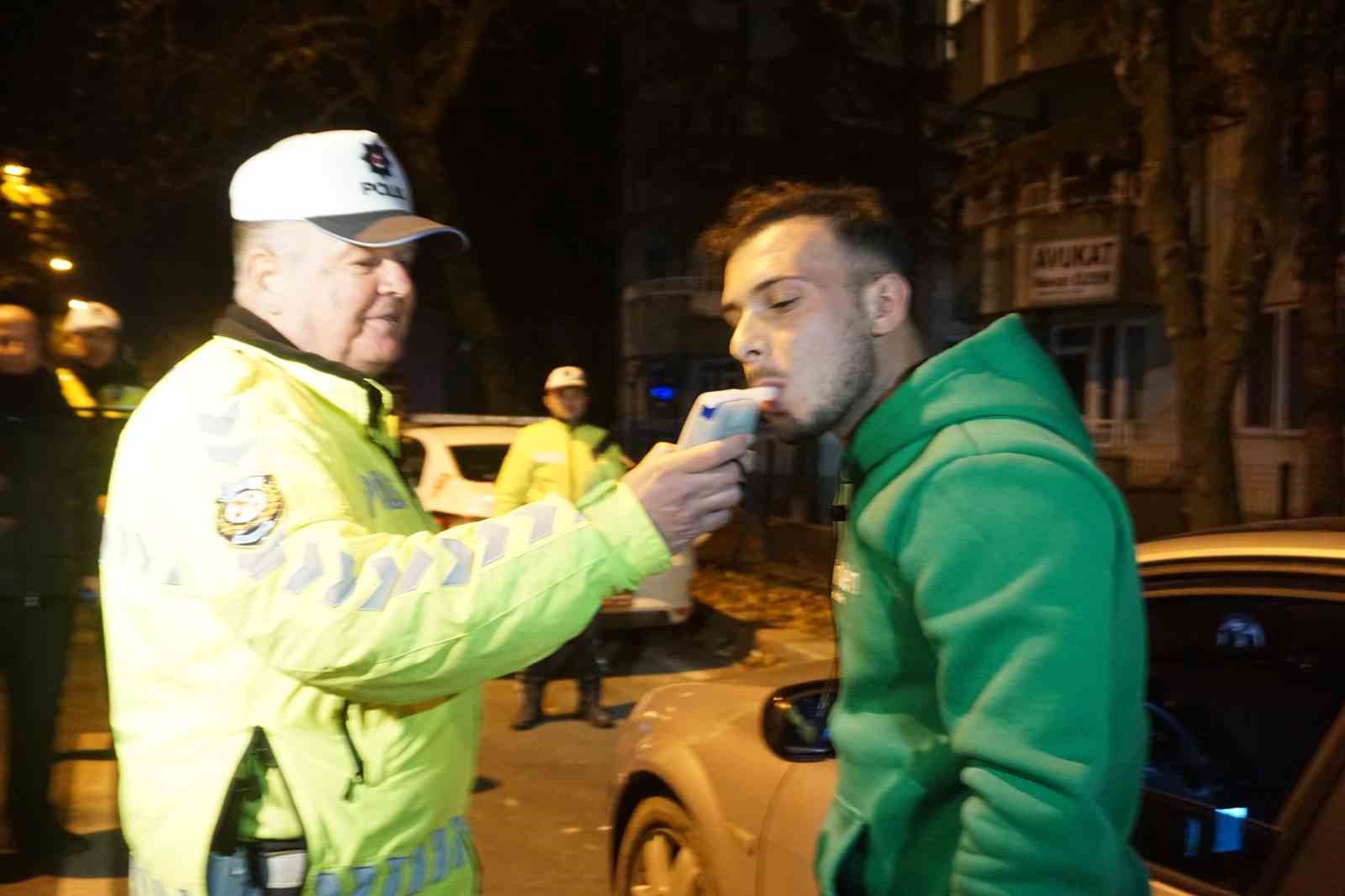 Denetim noktasına gelen araçları tek tek durduran ekipler, sürücülerin evraklarını kontrol ederek, alkolmetre ile ölçüm yaptı.