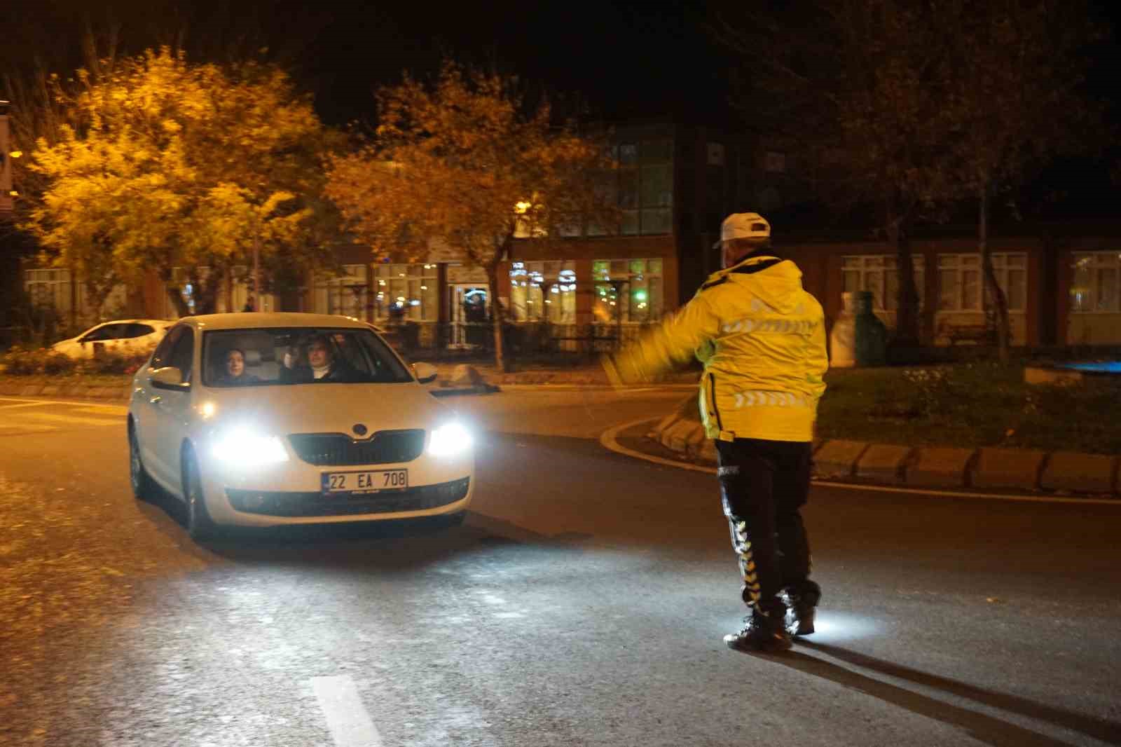 Edirne İl Emniyet Müdürü Onur Karaburun, giydiği trafik üniformasıyla katıldığı denetimde araçları tek tek durdurarak sürücüleri kurallara uyması noktasında uyardı.