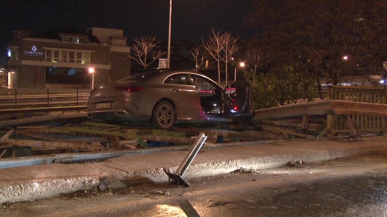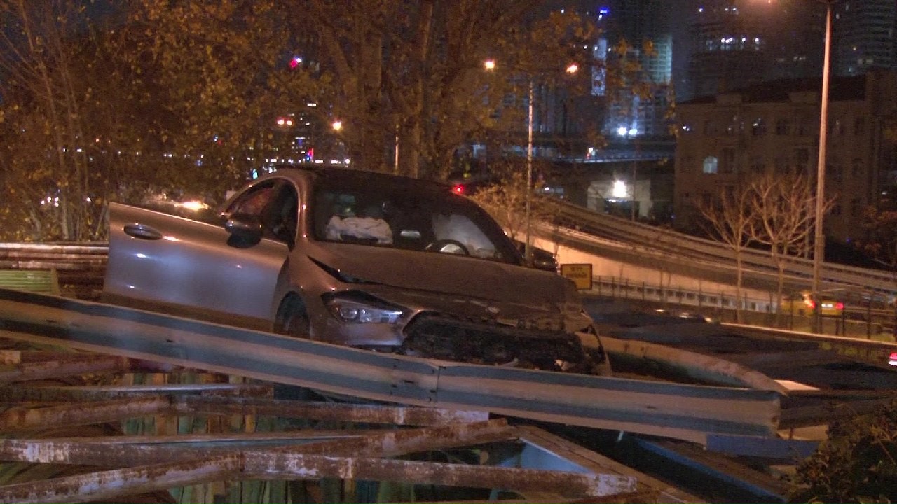 Kadıköy’de alkollü sürücü direksiyon hakimiyetini kaybederek önce bariyerlere çarptı, ardından da köprünün üzerinde asılı kaldı. Kaza yapan alkollü sürücü kazayı çekmek için olay yerine giden basın mensuplarına saldırdı.
