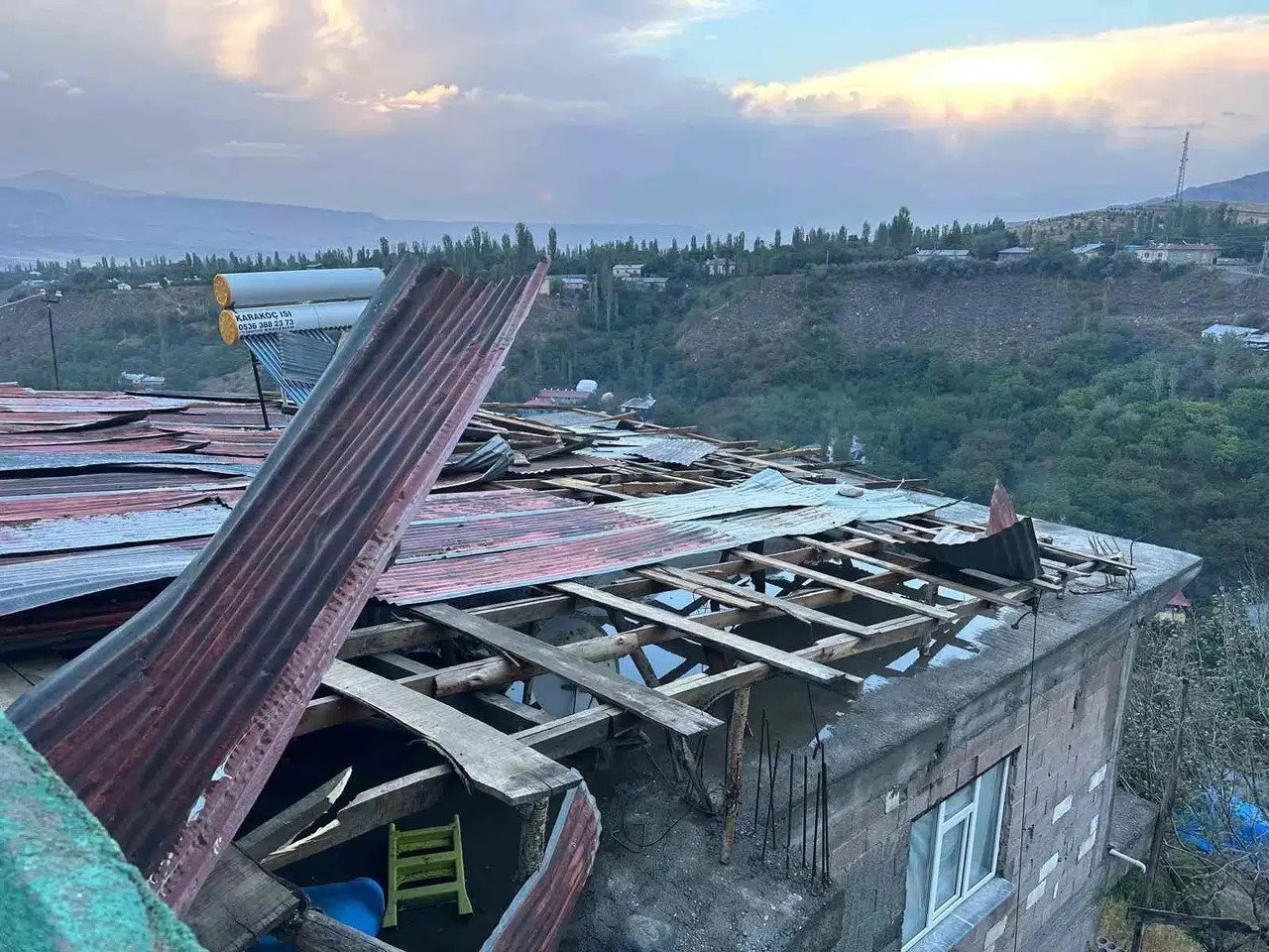 Kağızman’da sağanak yağmur ile birlikte etkili olan şiddetli rüzgar çatıları uçurdu. Çok sayıda evde maddi hasar oluştu.