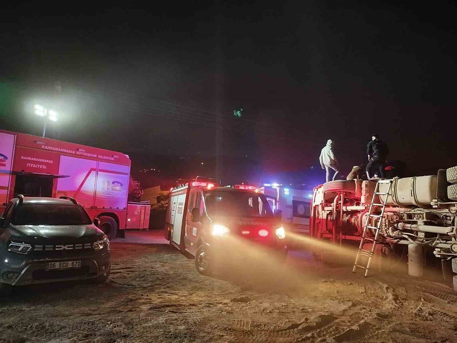 Kaza, Dulkadiroğlu İlçesi Elmalar Mahallesi deprem konutları inşa sahasında meydana geldi. Sürücüsünün ismi öğrenilemeyen 09 ADT 503 plakalı Mercedes marka kamyon, seyir halindeyken direksiyon hakimiyetini kaybederek yan yattı. İhbar üzerine olay yerine gelen itfaiye ekipleri kamyon içinde sıkışan sürücüyü çıkararak sağlık ekiplerine teslim etti.